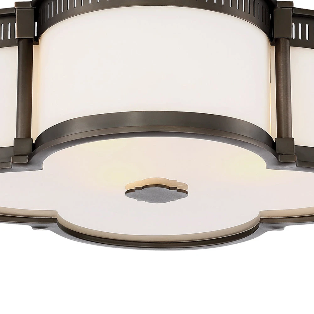 Classic quatrefoil design creates an impeccable silhouette for the 824-L LED Flush Mount Ceiling Light from Minka Lavery. Exquisite attention to detail delivers architectural trim for a chic enhancement of bedrooms and dens. An etched white diffuser encloses the fixture, assuring soft, true illumination from the LED light source within.