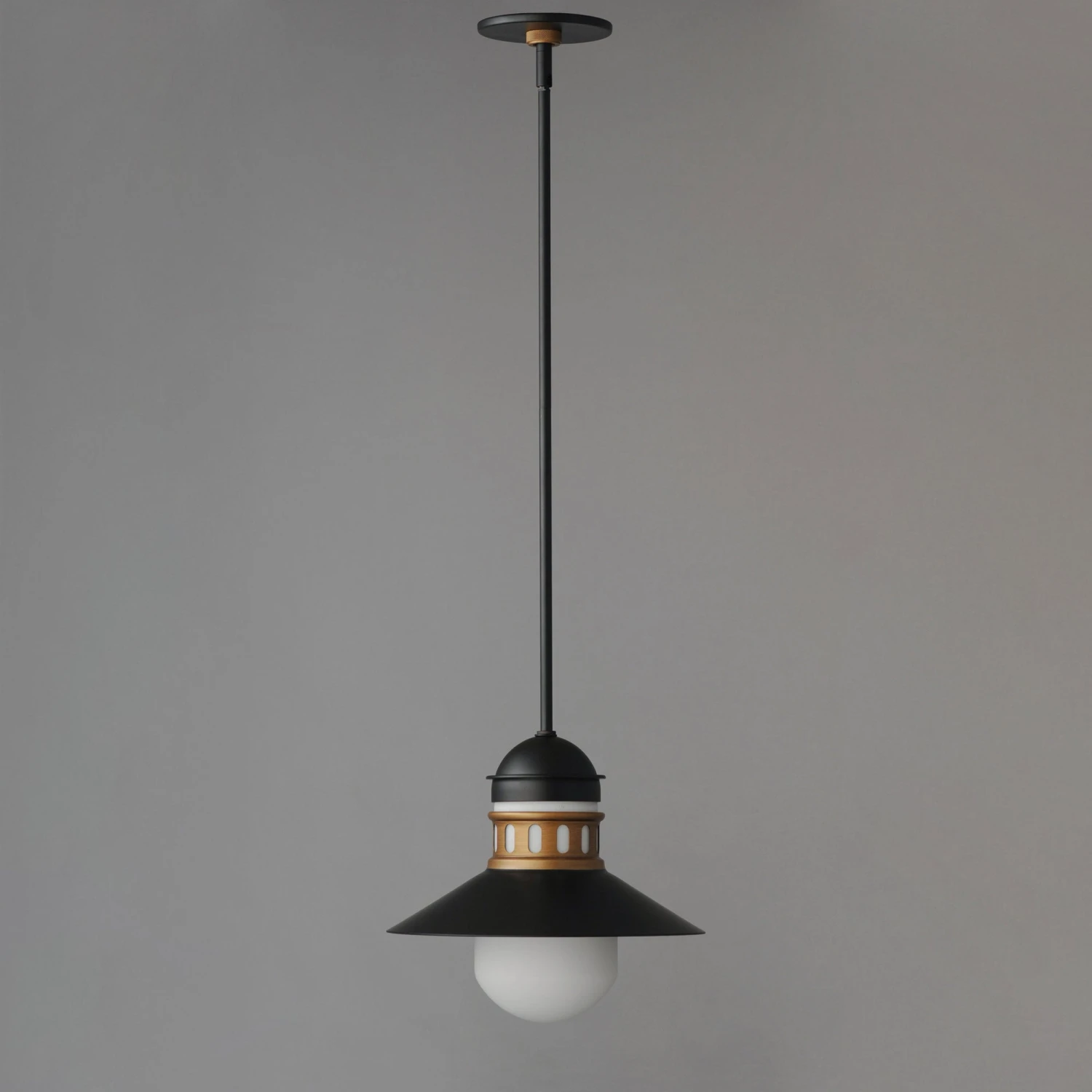 We love the trending style embellishments seen in outdoor lighting fixtures. Note the Admiralty Outdoor Pendant Light from Maxim Lighting and its charming maritime aesthetic, with industrial influence in a conical spun aluminum shade. A capsule-shaped white glass bulb creates a whimsical look perfect for outside entertaining.