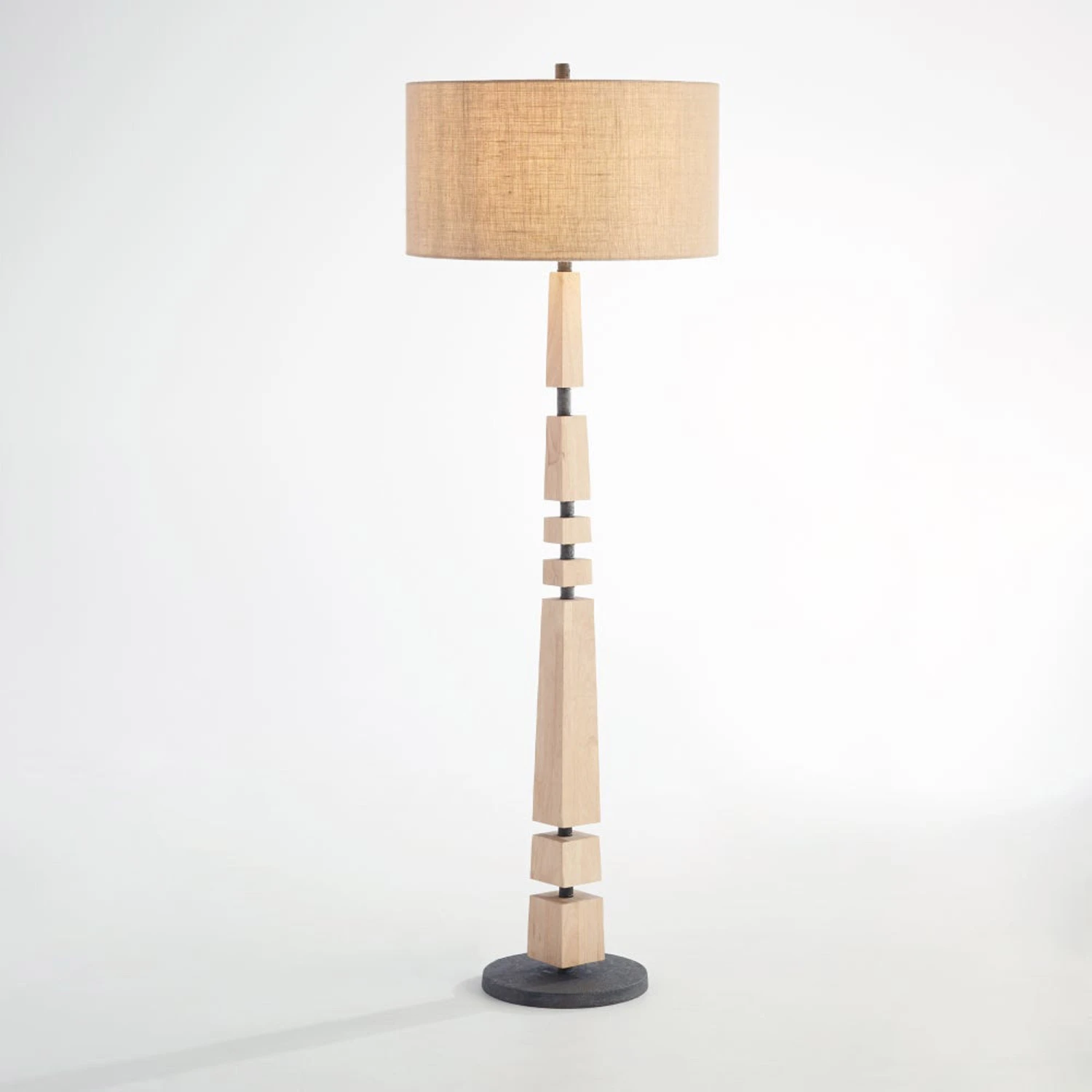 Bring a natural yet geometric motif to a modern living space with a floor lamp delivering versatility and pure style. The Adonis Floor Lamp from Cyan Design creates an intriguing design with tapering, blending distressed mango wood construction with black faux plaster iron blocks interrupting its long frame. Topped with a soft, inspired natural linen shade, this floor lamp weaves into a casual yet tasteful décor scheme in a living room, den, or bedroom.