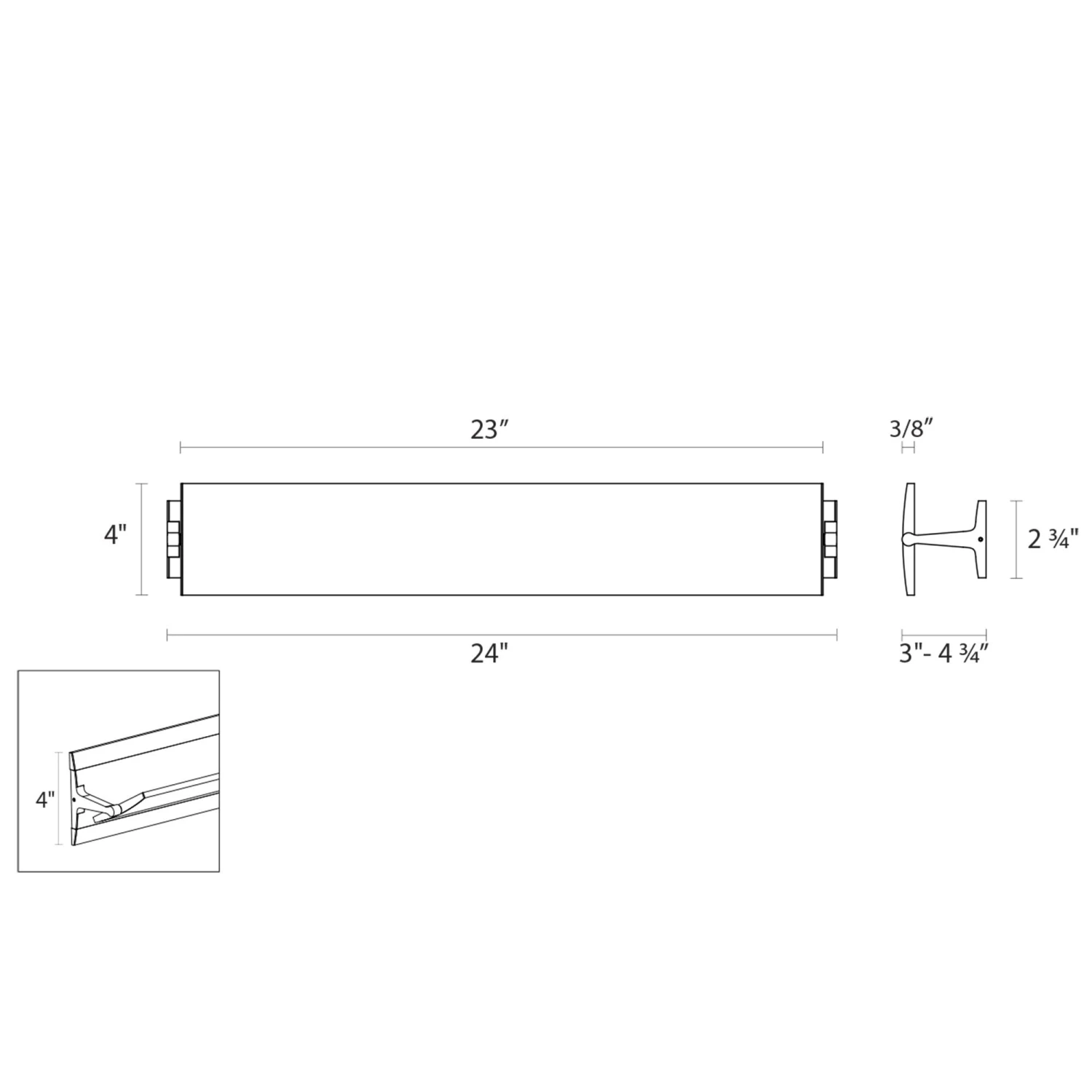 - Medium: 24″W X 4″H; 3″- 4.75″ Extension