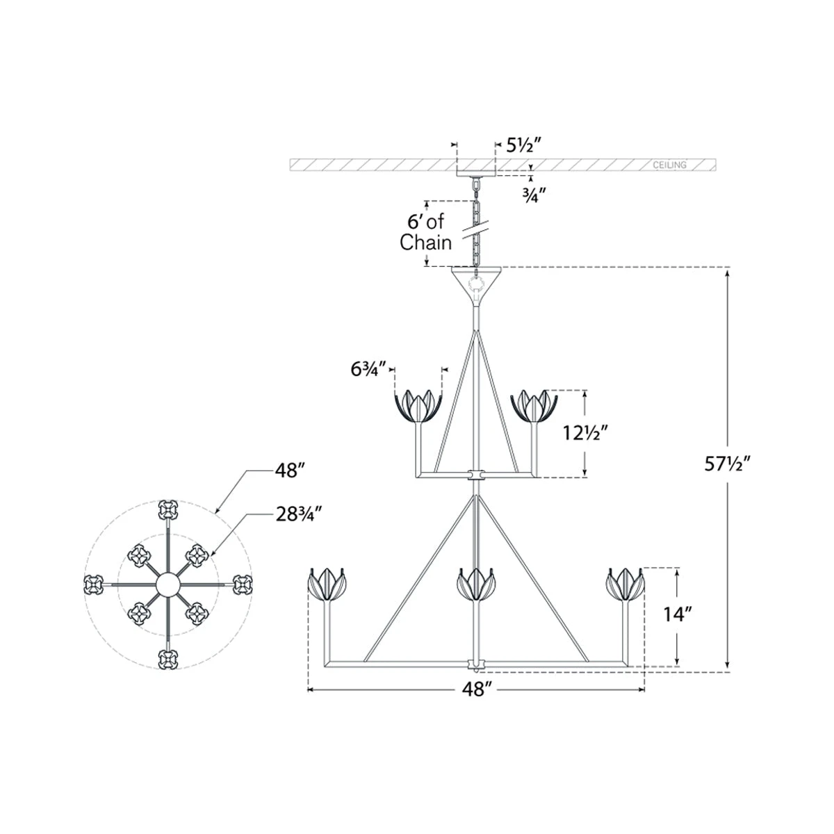 - 2-Tier: 8 X 60W 120V E12(candelabra base) G16.5 incandescent lamps (not included)