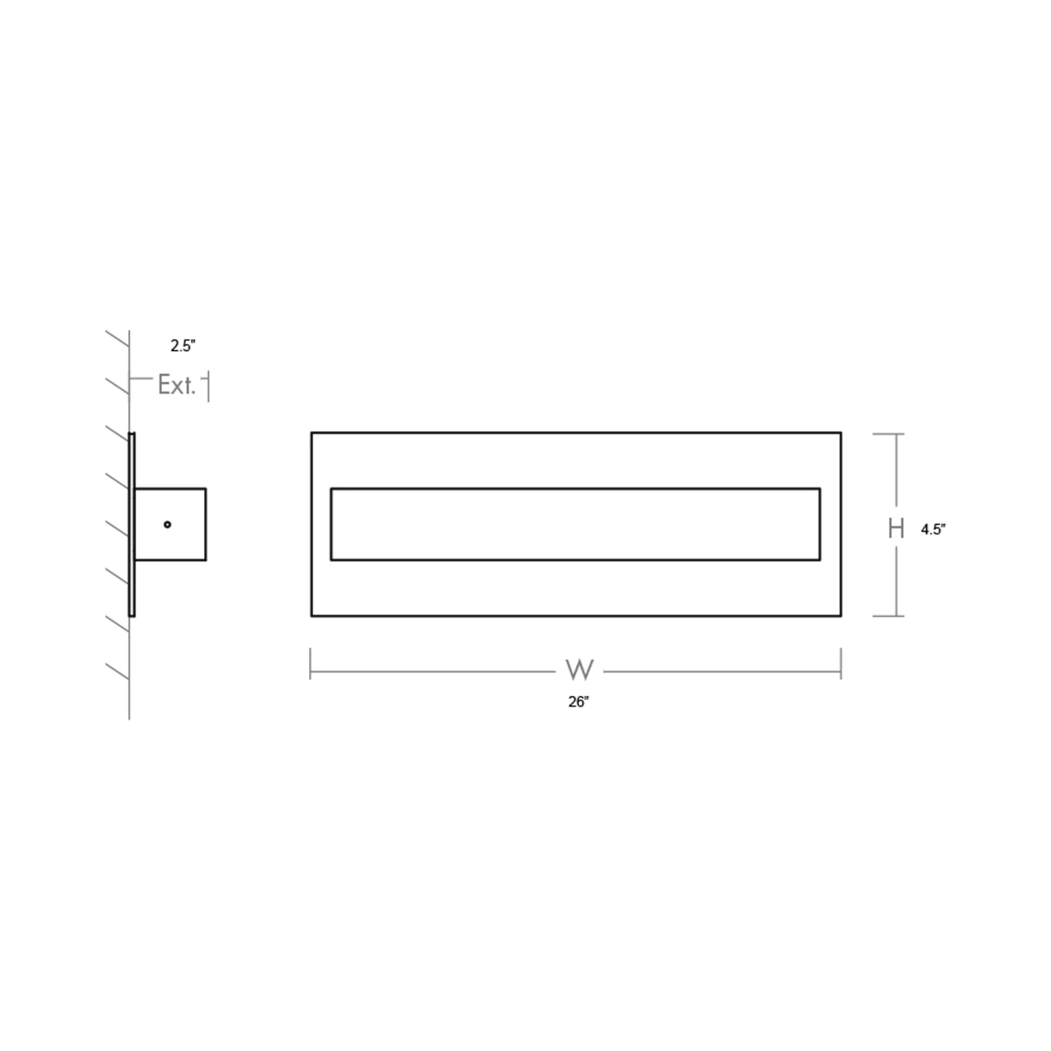 - 26-Inch: 26″W X 4.5″H; 2.5″ Extension