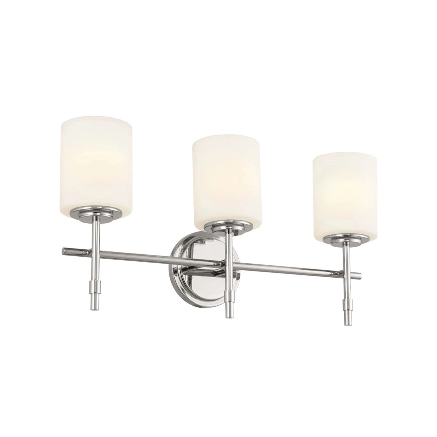 Simple and sleek, the Ali Bath Vanity Light from Kichler sets the tone for a refined but welcoming space. Torch-style arms host cylindrical shades, deliver diffused but bright illumination perfect for both ambiance and daily grooming. The perfect upgrade for your stylish vanity.