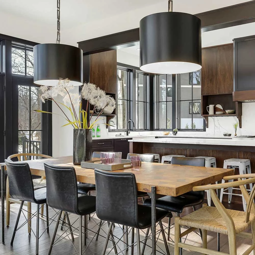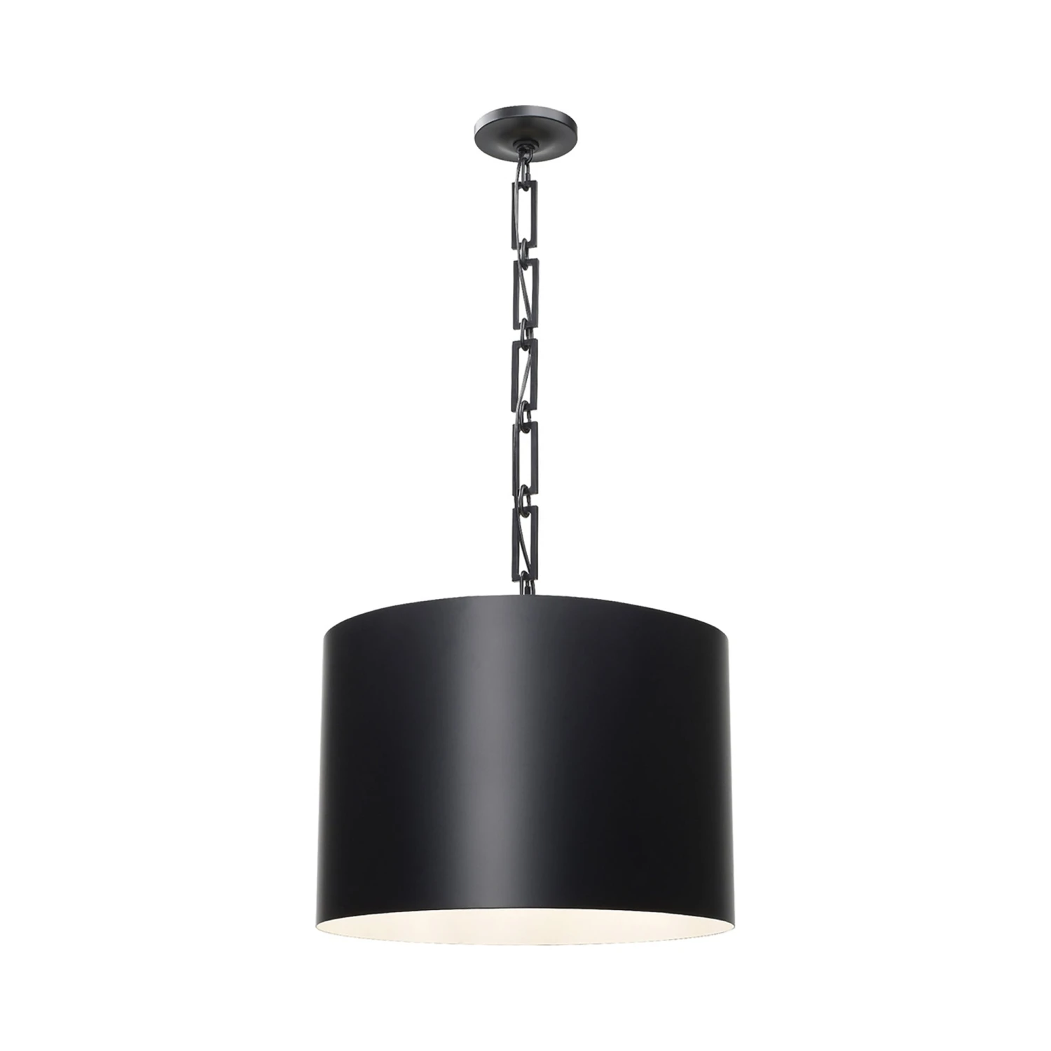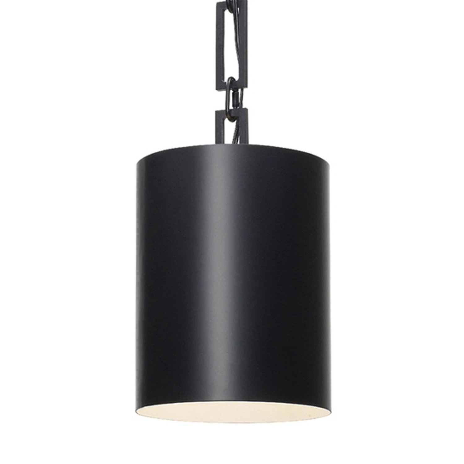 With a chic cylinder silhouette forming a stylish shade, the Alston Pendant Light from Crystorama fits a number of interior design schemes and adds a retro attitude to its industrial flavor. Make a statement with this metal fixture and its bold openwork rectangular chain link suspension, an obvious enhancement that magnifies its character.