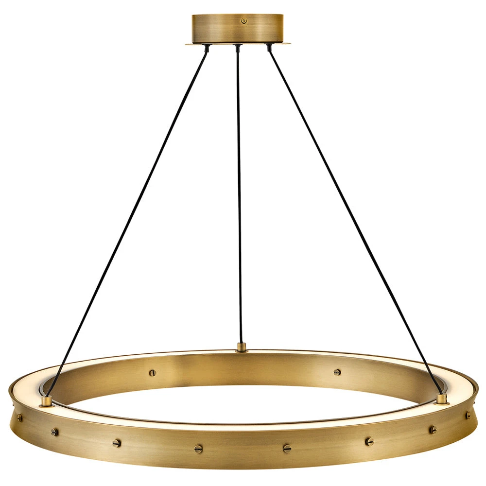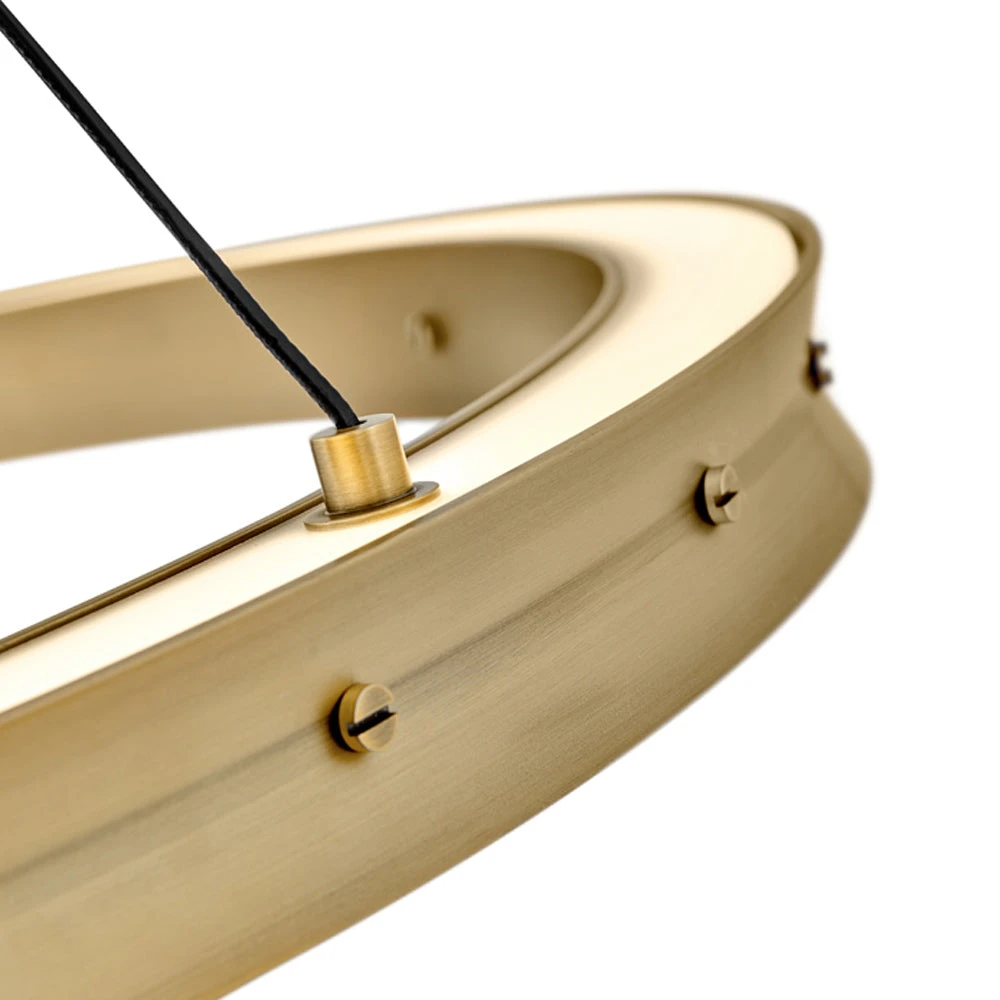 Glamour meets minimalism in the Althea LED Chandelier from Fredrick Ramond. A striking choice, this ring pendant features a concave track design complete with decorative screws that create impeccable texture and dimensionality. A sleek etched diffuser sits atop and below, creating a chic mix of up and downlighting perfect for ambiance in a dining room or foyer.