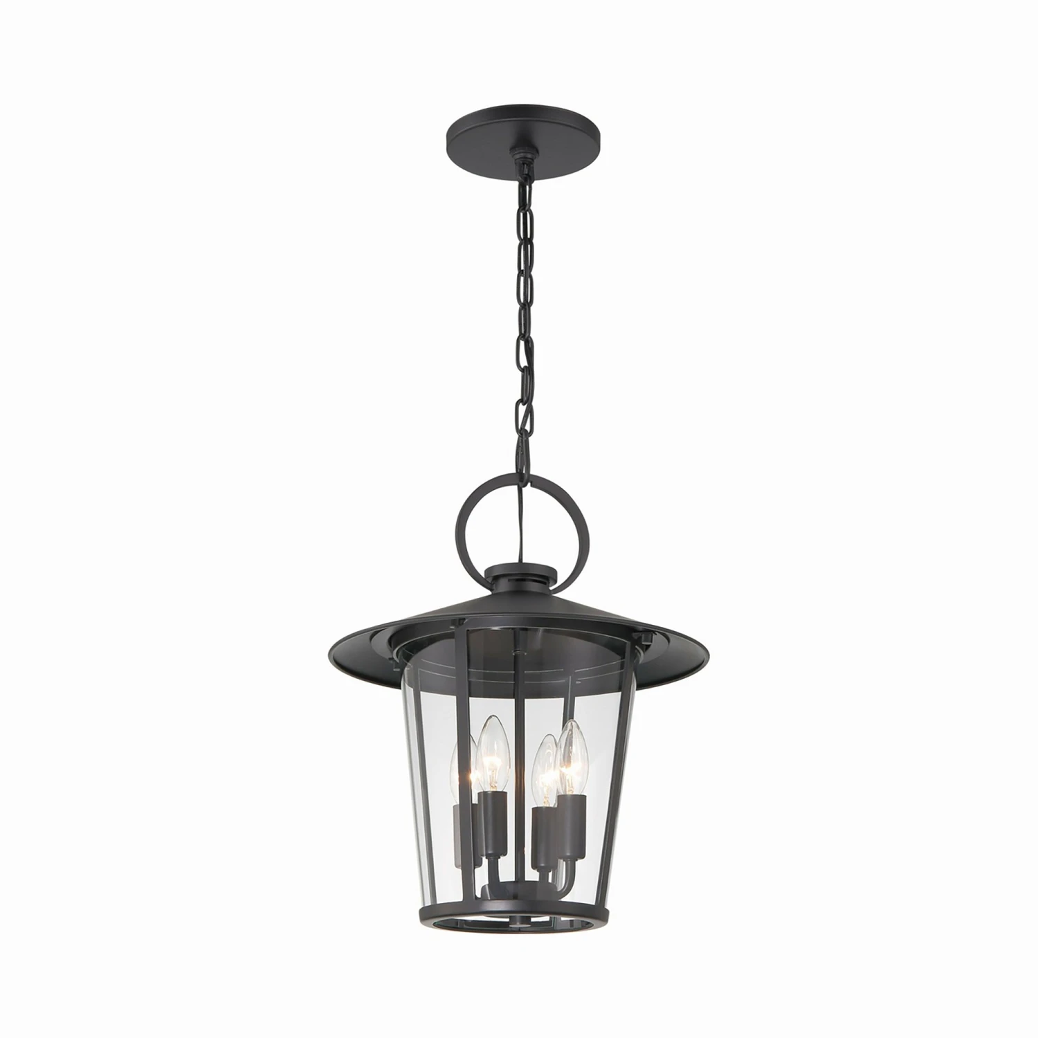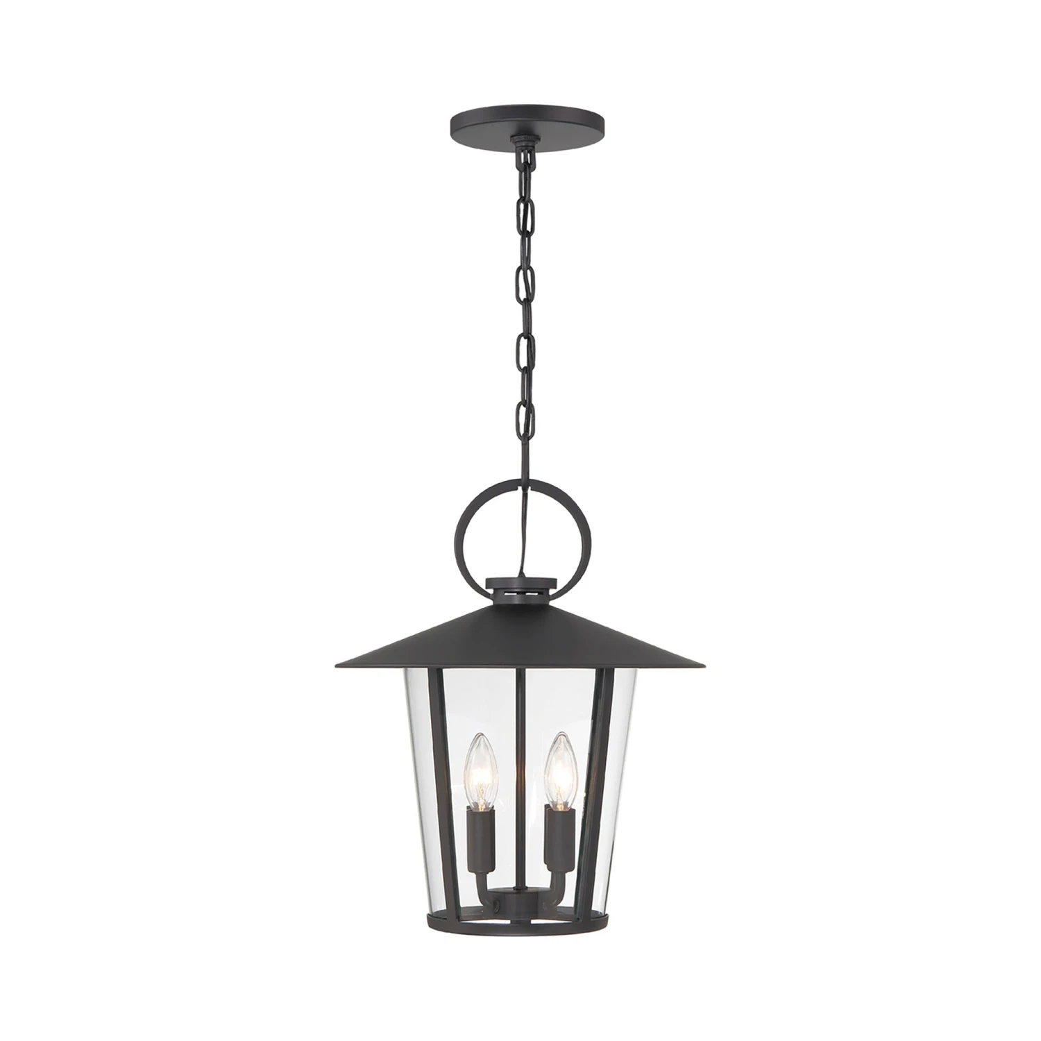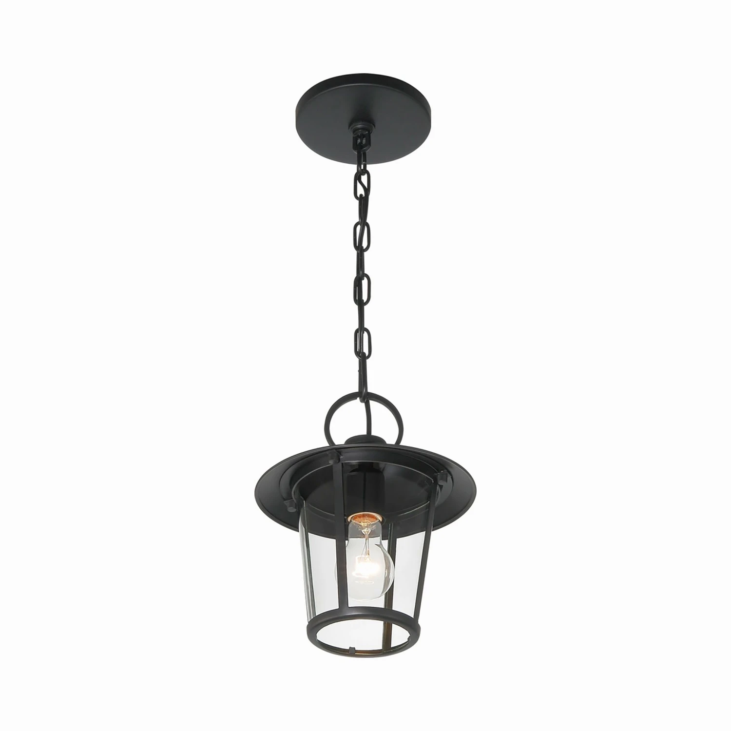 Olde World charm captivates with an iconic lantern design as the Andover Outdoor Pendant Light from Crystorama lightens the mood and the setting. A slightly updated round silhouette and structured metal framing is accented with a prominent ring, making this exterior light a versatile choice for patios and porches.