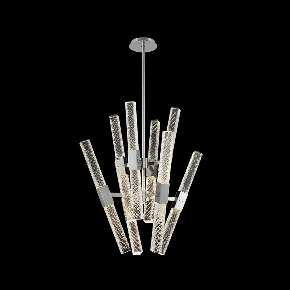 A veritable bouquet of crystal dazzles in the Apollo LED Convergent Chandelier from Allegri. Impressive in its modernity, the chandelier features angular, clear crystal rods that are hand-cut to bring depth and detail. A metallic finish highlights the structure of this fixture, offering restrained, contemporary energy over a breakfast nook or sitting area.