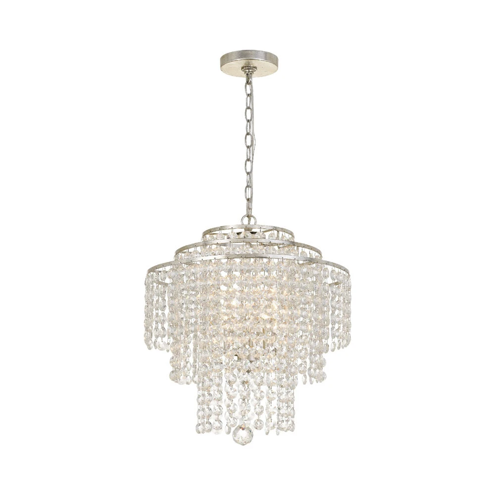 Layers and circles coalesce in the Arielle Chandelier from Crystorama, delivering a classic traditional look with theatrical artistry. Strands of hand-cut crystal elements drape gracefully in tiers, overlapping to fashion an intriguing diffusion of ambient lighting. Slender metal rings frame each layer to create definition.