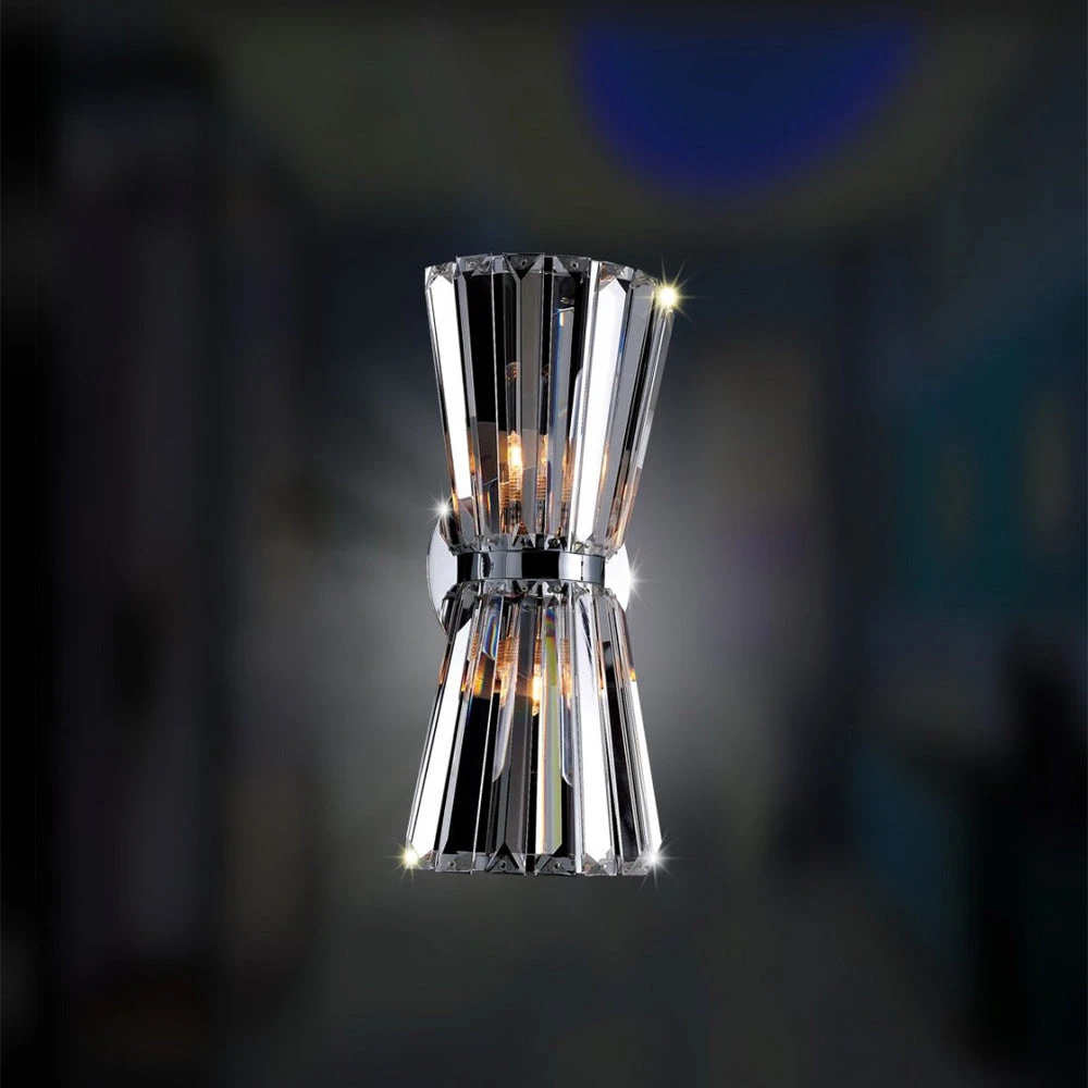 Take modern glamour to new places with the hourglass profile of the Armanno Wall Light from Allegri. Prismatic crystals are set at an angle to create its intriguing shape, while a chrome band at the center reflects light and offers a sophisticated finishing touch. Perfect flanking a grand entry or elegant vanity.