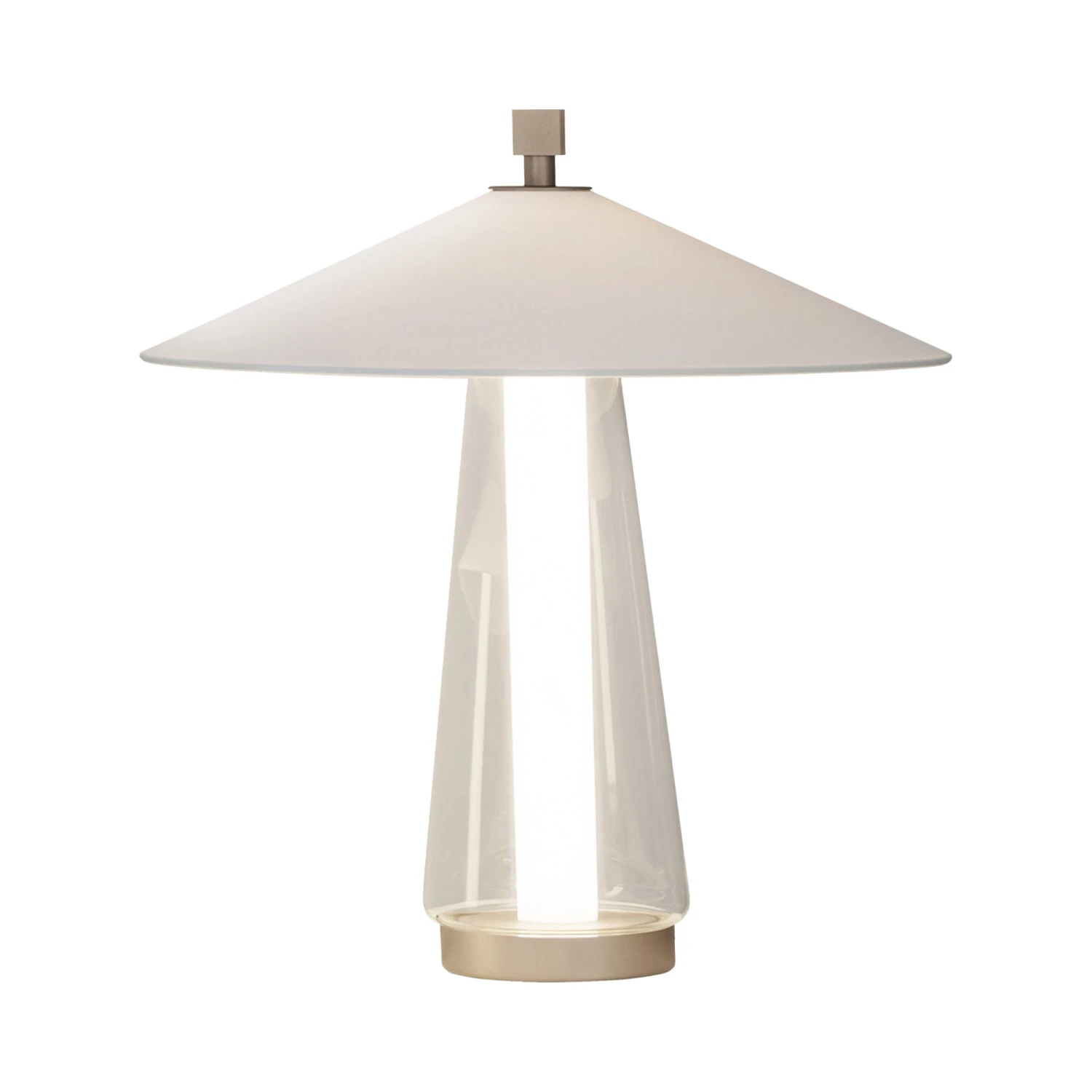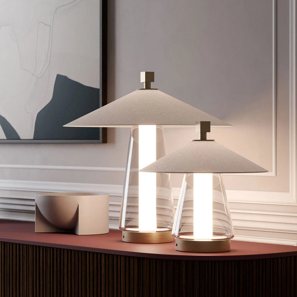 A lighted tube and conical shade create a compelling silhouette for the modern Asia LED Table Lamp from Contardi. A sculptural finial accentuates the look to perfection, while the light cast is bright and direct, perfect for occasions of all types.