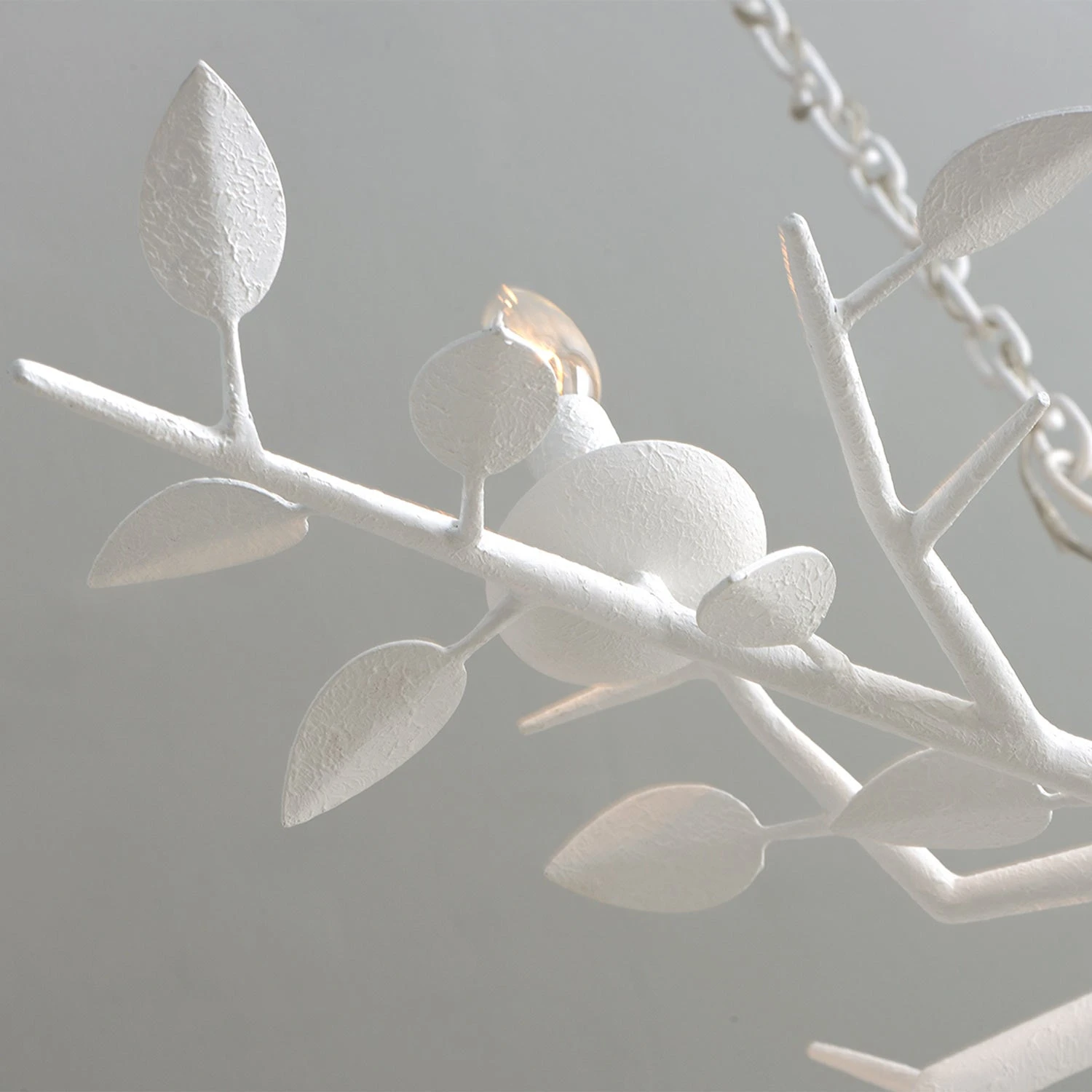 Meandering branches are dotted with realistic leaves to bring earthy ambiance to the Aubrey Chandelier from Troy Lighting. Perfect for a morning room or breakfast nook, the chandelier sports a textured white finish for a clean look and feel that’s both light and airy.