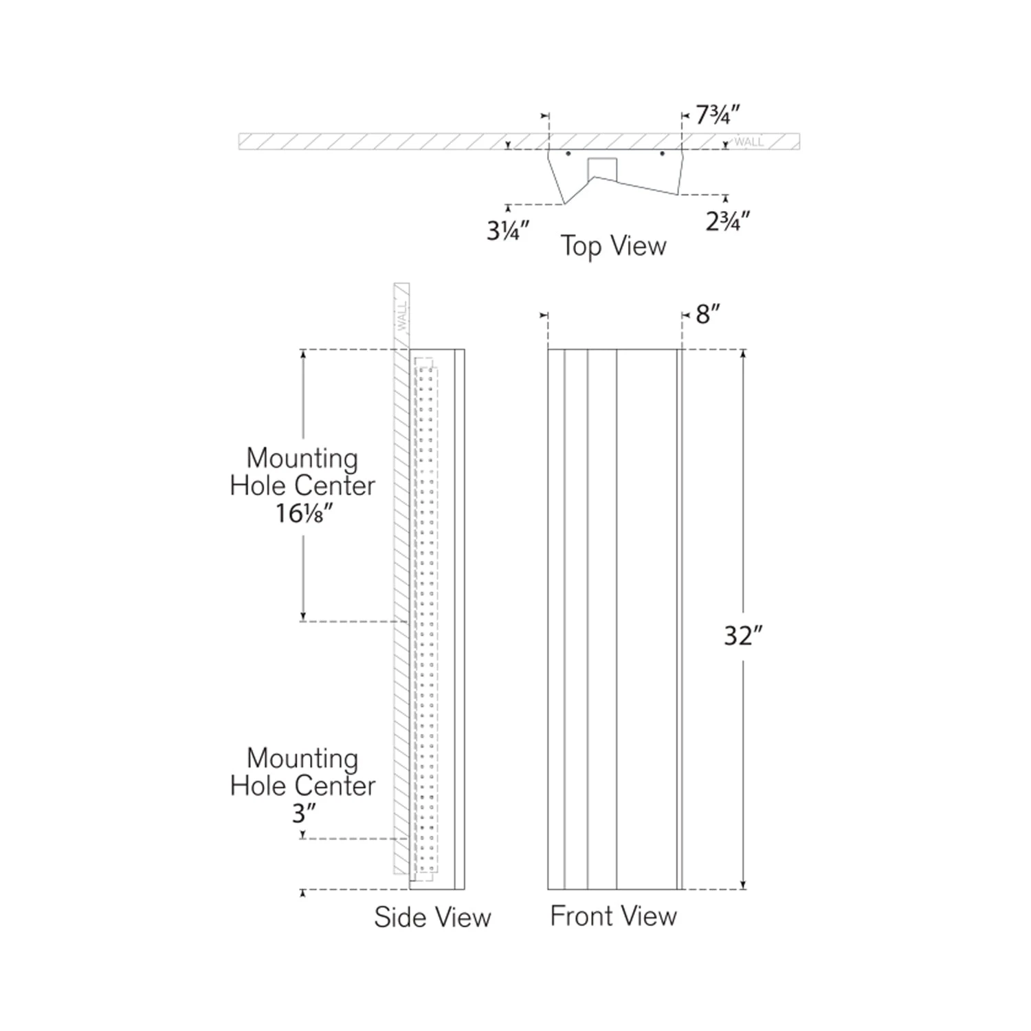 - 32-Inch: 8″W X 32″H; 3.25″ Extension