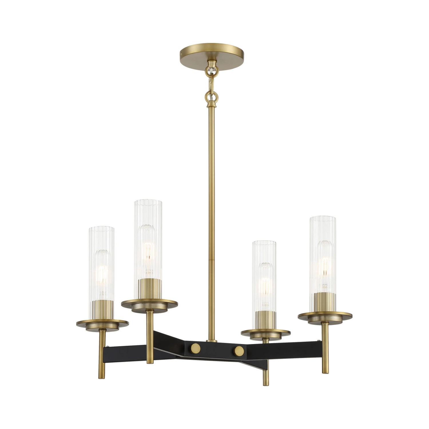 Elevate contemporary dining rooms and interiors with the Baldwin Park Chandelier from Minka Lavery. Designed with a simple yet elegant details throughout, this sophisticated chandelier presents a dark coal finish arms that raise clear ribbed glass lanterns above for a timeless aesthetic and ultra-modern industrial vibe. Adding a glam metallic touch are soft brass finish bobeches where the fluted lanterns rest.