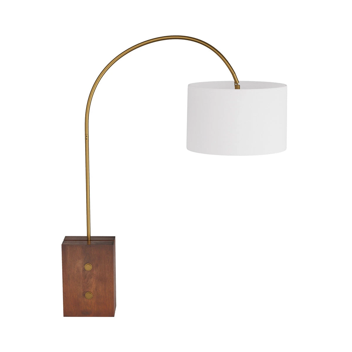 Contrast and silhouetting are on board with a casual yet design-forward lamp ideal for all settings. The Bali Floor Lamp from Arteriors mixes materials, placing a heavily arched metal arm on a dual-block frame made of rich walnut finished rubberwood. Asymmetrical with a drum shade, it offers a surprisingly chic aesthetic in a living room or bedroom.