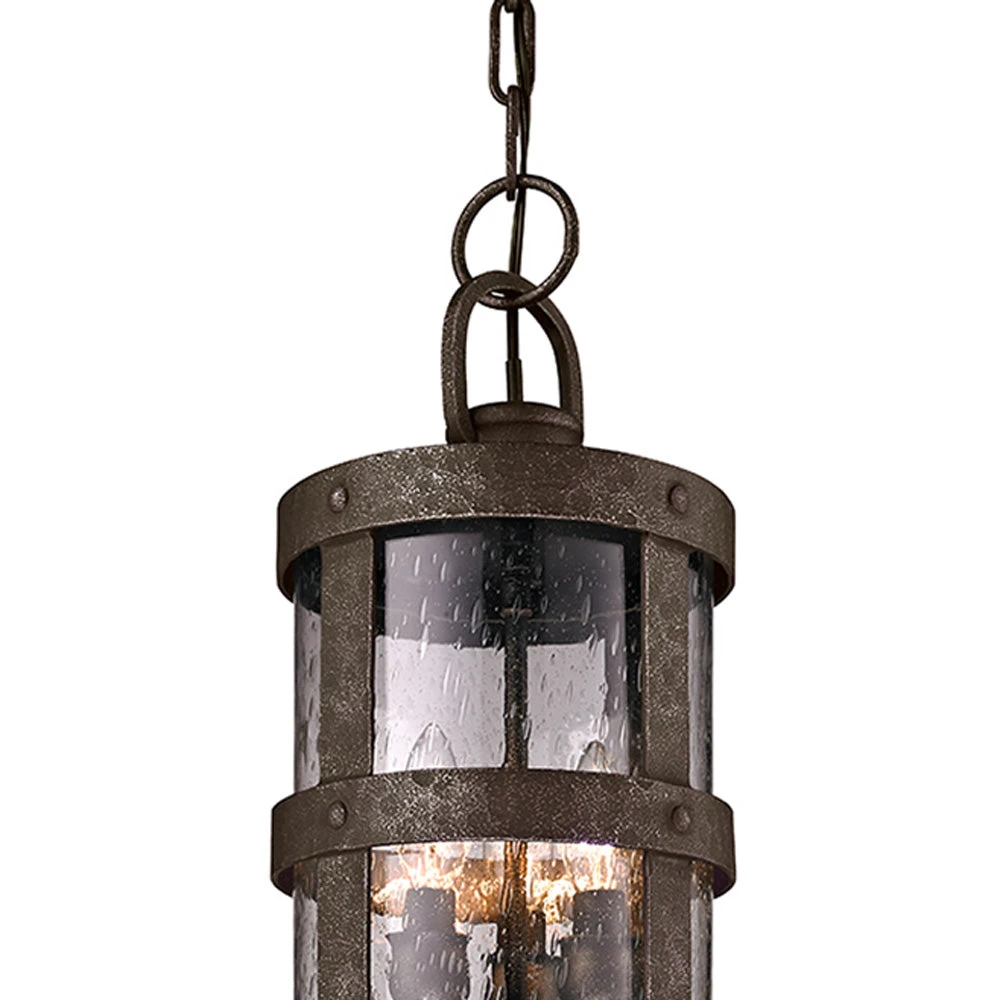 Wrought with detail and depth, the Barbosa Outdoor Pendant Light from Troy Lighting casts a weathered glow through clear, seeded glass. It’s a study in contrast, featuring a rugged structure paired with atmospheric light.