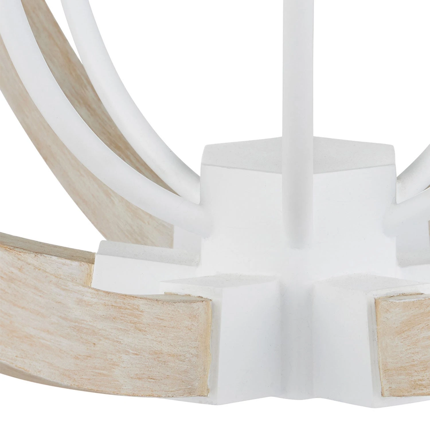 A standout element of modern interior design shows its stuff with enthusiastic elegance as the Bastian Chandelier from Currey and Company becomes a central focus in any setting. Intersecting open rings of sandstone wood form a global motif, with a centered cluster of delicate lights stemming from a sugar white finish wrought iron base. Subtle accents and a classic white chain suspension embellishes this tasteful fixture.