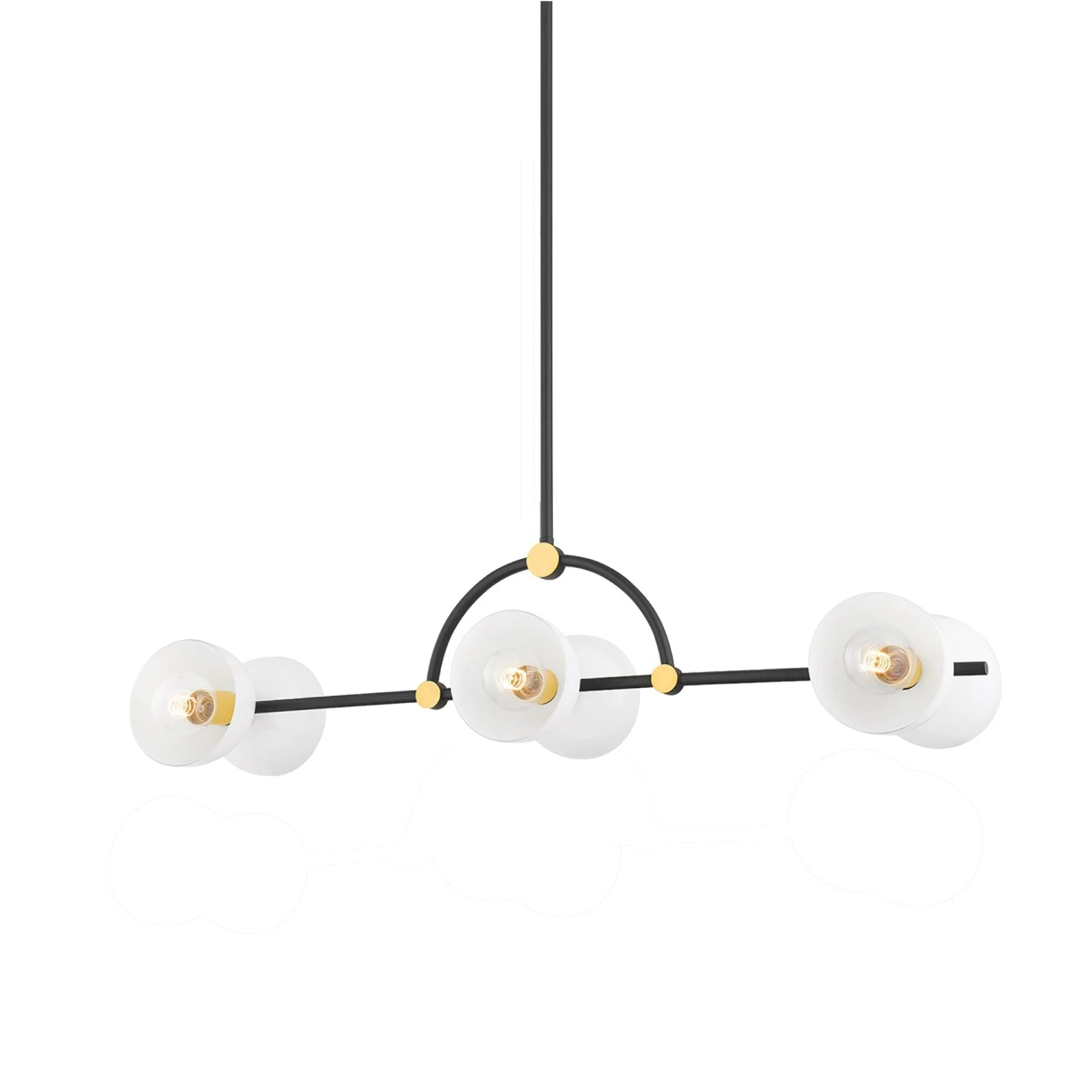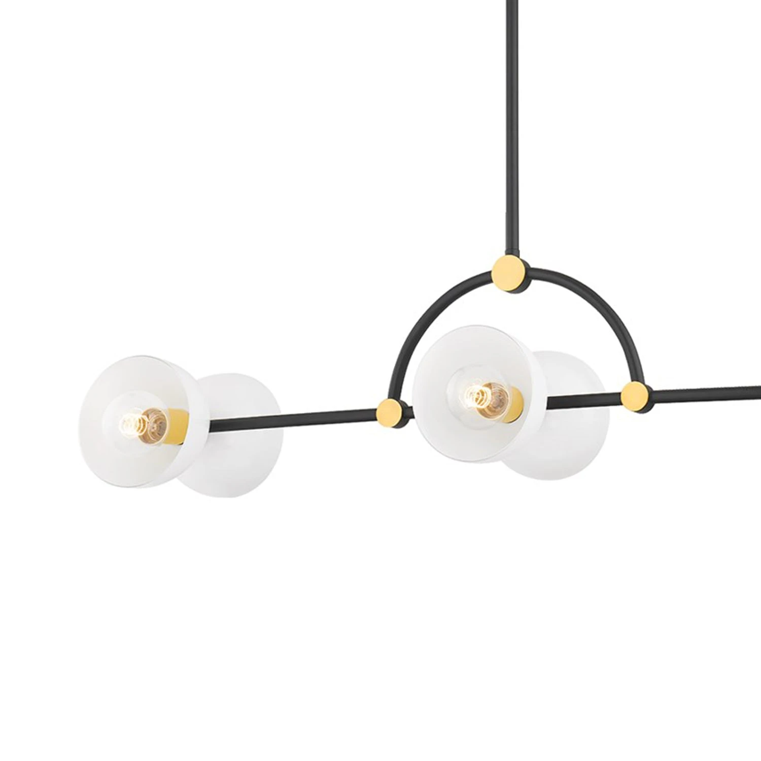 Attention to detail offers energetic attitude that makes a statement in an updated space welcoming new and retro styles. Choose the Belle Island Light from Mitzi for a truly playful look in lighting and a bent toward simple geometric shaping. Aged brass finish metal accents dot the crisp black framing, as decadent glossy white glass shades showcase exposed bulbs to deliver a bit of studio personality.