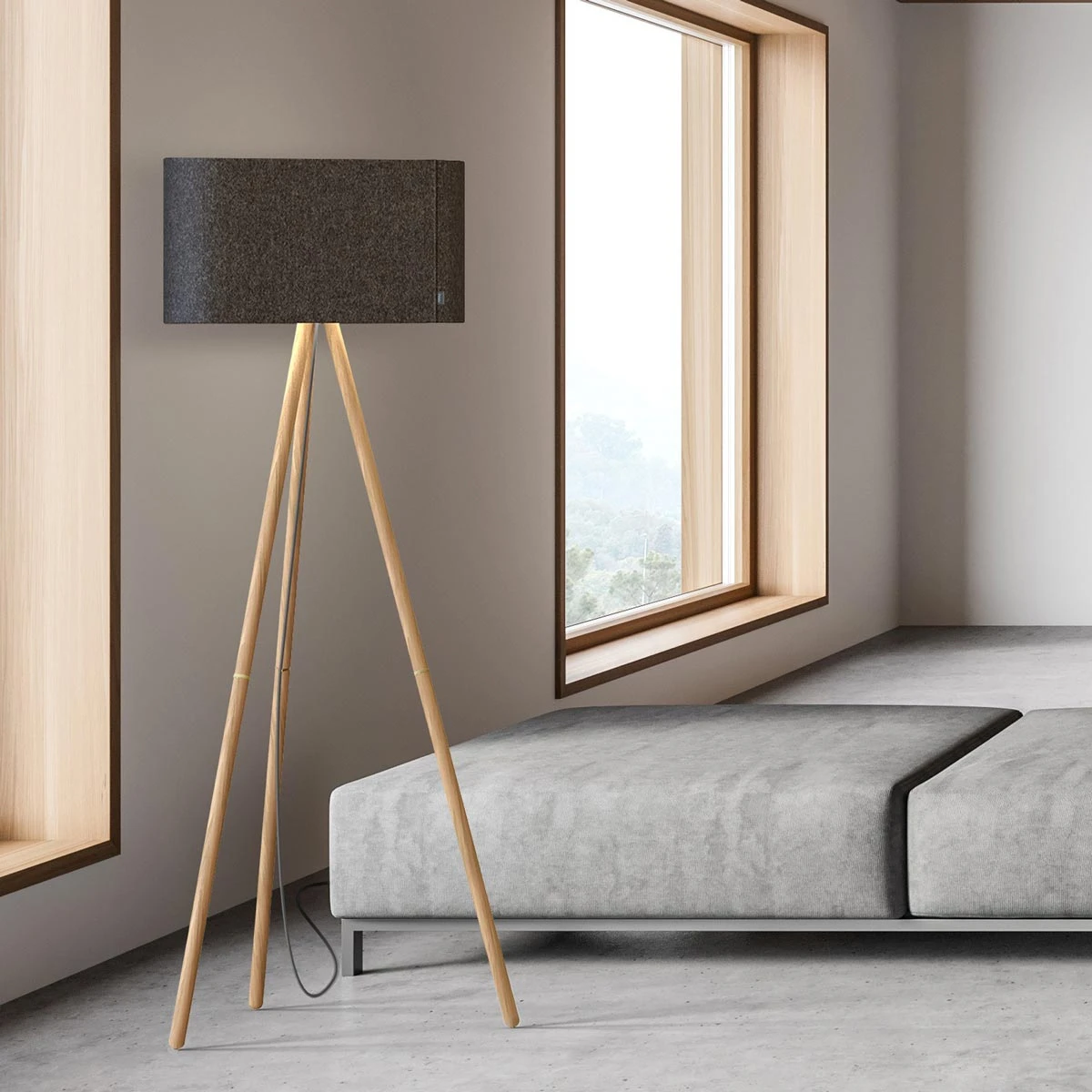 A trio of wood posts creates the iconic tripod silhouette of the lovely Belmont Floor Lamp from Pablo. Designed to make a statement in a living area or home office, it’s topped with a chic shade complete with a raceway-inspired shape that lends clean, sleek sophistication to any room.
