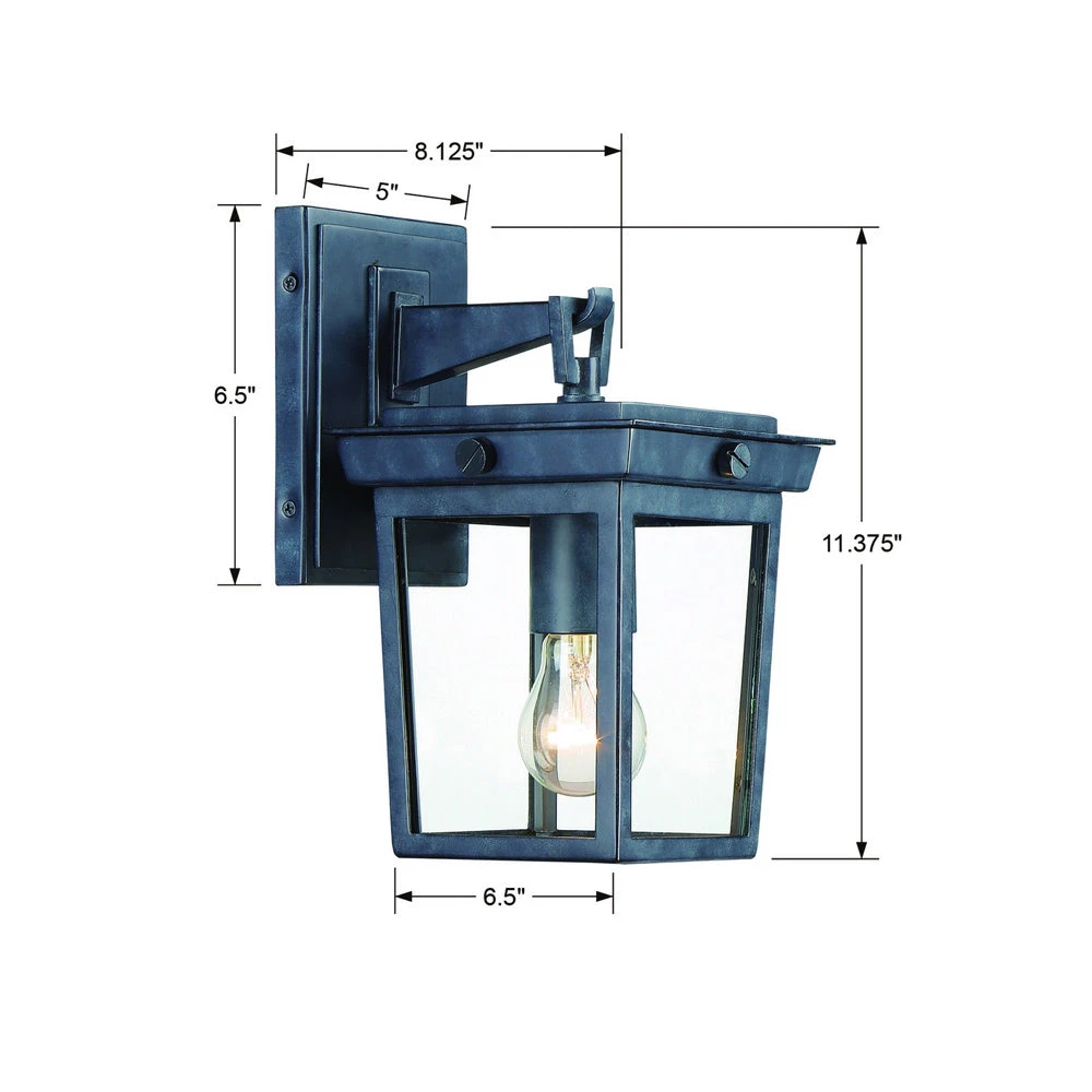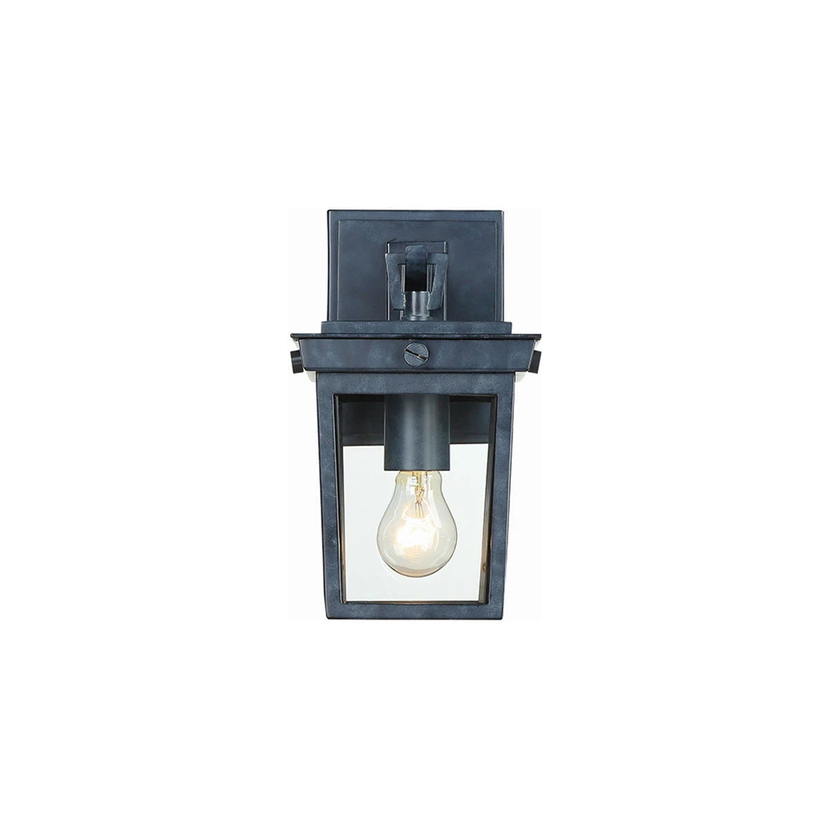 Structural detail tells a compelling story in the design of an industrial-inspired exterior light offering an intriguing look to any structure. The Belmont Outdoor Wall Light from Crystorama focuses on accenting with its cool graphite metal finish frame and geometric details, with exposed bolts and an exposed bulb socket repackaging the iconic lantern motif.