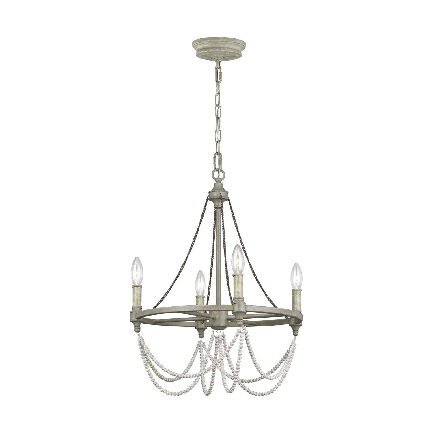 The Beverly Collection features a stunning combination of rustic, time-worn finishes like Distressed White Wood on the cascading beads, our vintage-inspired French Washed Oak finish on the frame and candle tubes, and Weathered Iron on the chain. Together these elements create a warm, and elegantly simple update to these traditionally-styled fixtures.