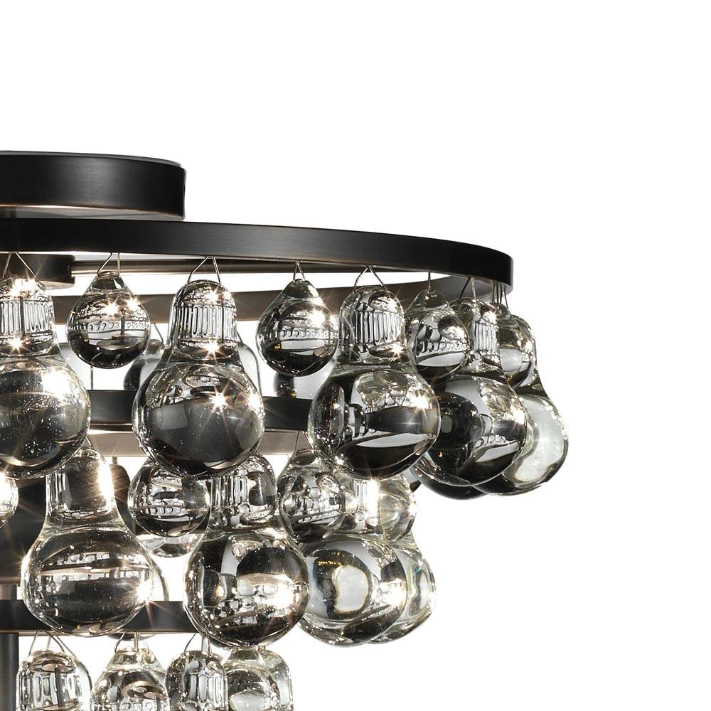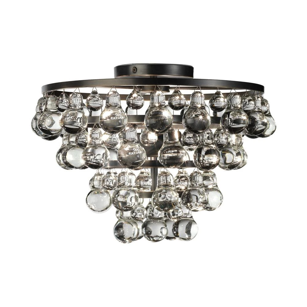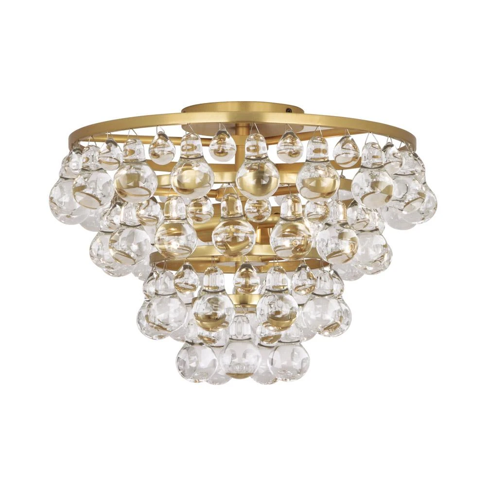 Embellished with a layered, graduated silhouette, the elegant Bling Flush Mount Ceiling Light from Robert Abbey displays gleaming glass drops suspending from metal ring frames available in a finish that complements a dining or living space.