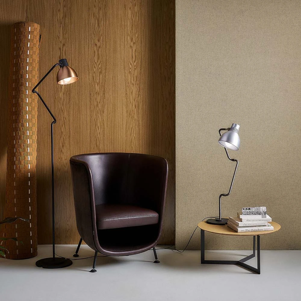 Retro influences shine through in this Blux System T Table Lamp from B.Lux. An articulating neck secures an old-school lamp into place, hovering over workstations and tables for a dignified and studious drafting table-inspired aesthetic.