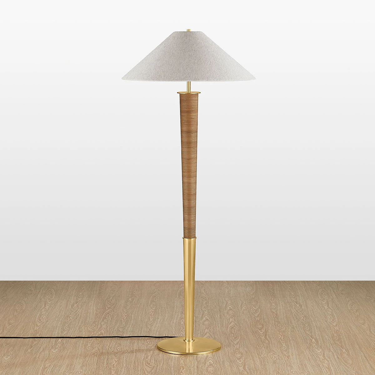 Earthy elegance meets effortless grandeur in the Bohicket Floor Lamp from Hudson Valley Lighting. The rattan-wrapped base feels like sun-warmed driftwood, grounding the airy linen shade in soft, organic luxury. This is statement lighting with a soul, all bold, serene, and undeniably enchanting.