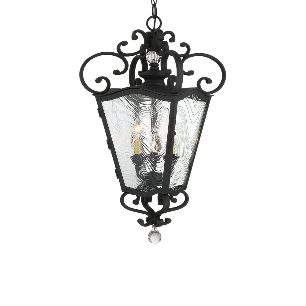 Irresistible artistry is chic and captivating as it plays out in an extraordinary light fixture perfect for highlighting custom entertaining spaces. Gallery glam turns the Brixton Ivey Outdoor Pendant Light from The Great Outdoors into a display of sensual style, with crisp sand coal finish metal framing features soft brass accents, and clear ripple glass adds a decadent look to panels distorting a view of interior lamping.
