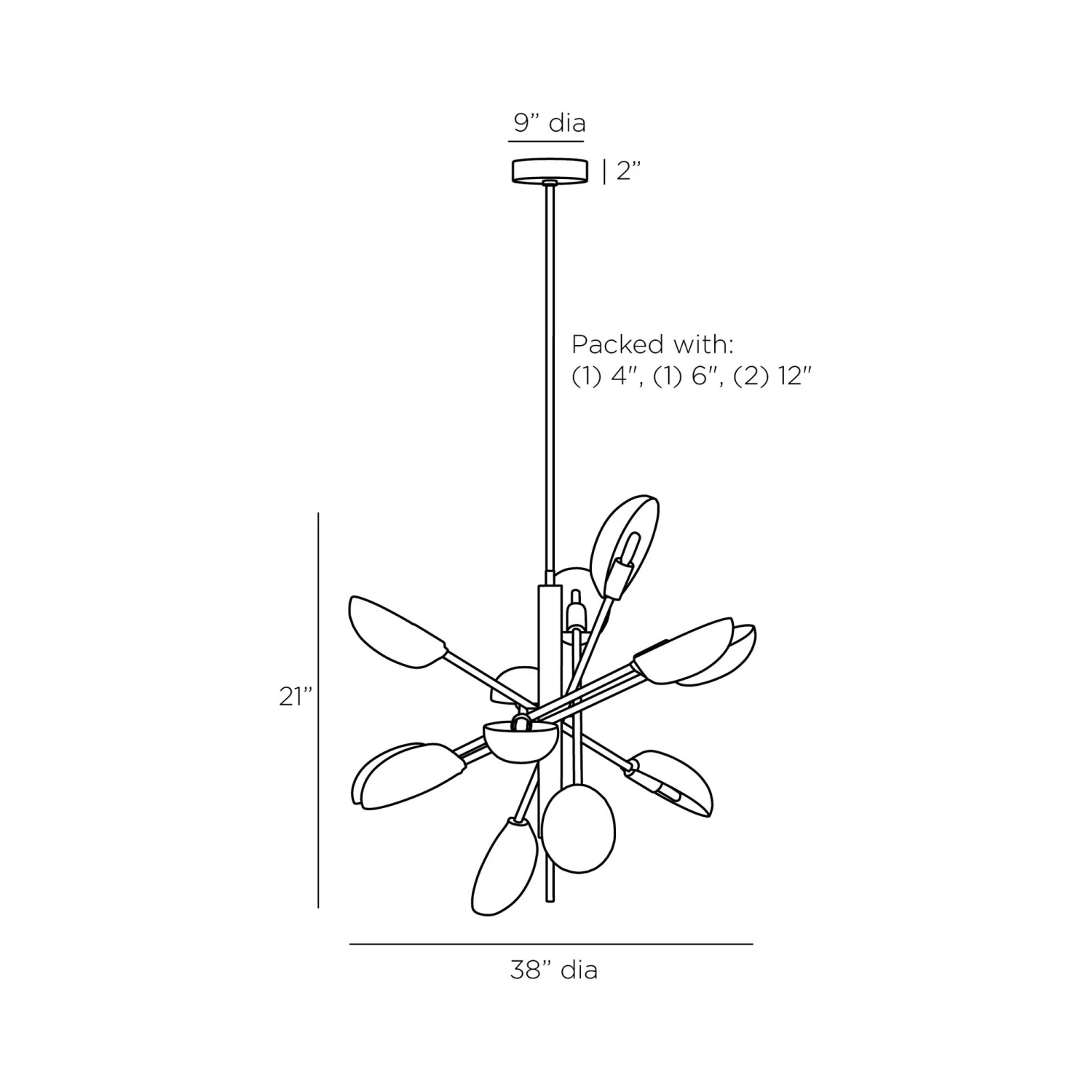 With a playful design and sophisticated materials, the Bryce Chandelier from Arteriors sets the pace for dramatic embellishment in lighting. The iconic Sputnik design earns a modern reset with linear metal framing capped by oval cup-shaped shades fashioned of English bronze steel. Between this fixture’s expertise in targeted lighting and its impactful style, is serves as a reminder of how fixtures become primary decor.