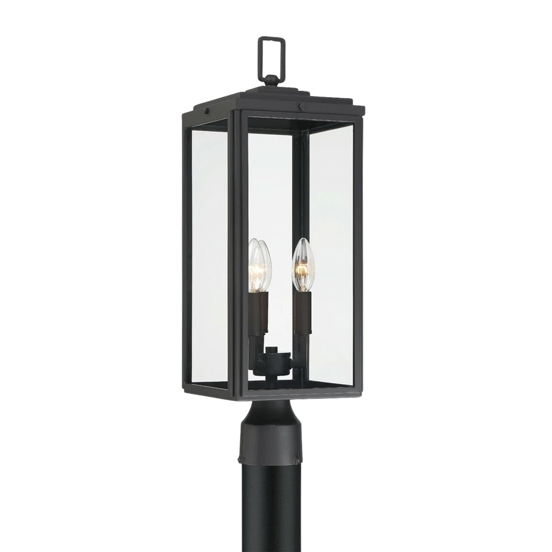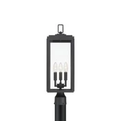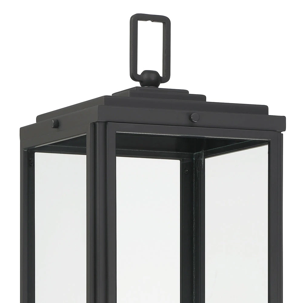 With a focus on crisp refining attitude, the Byron Outdoor Post Light from Crystorama delivers a sophisticated vibe to custom exterior spaces. Bold matte black finish metal framing adds a bevy of silhouetting accents, showcasing petite bulb sockets visible through clear glass panels. Call attention to gardens and walkways with this modern exterior fixture.