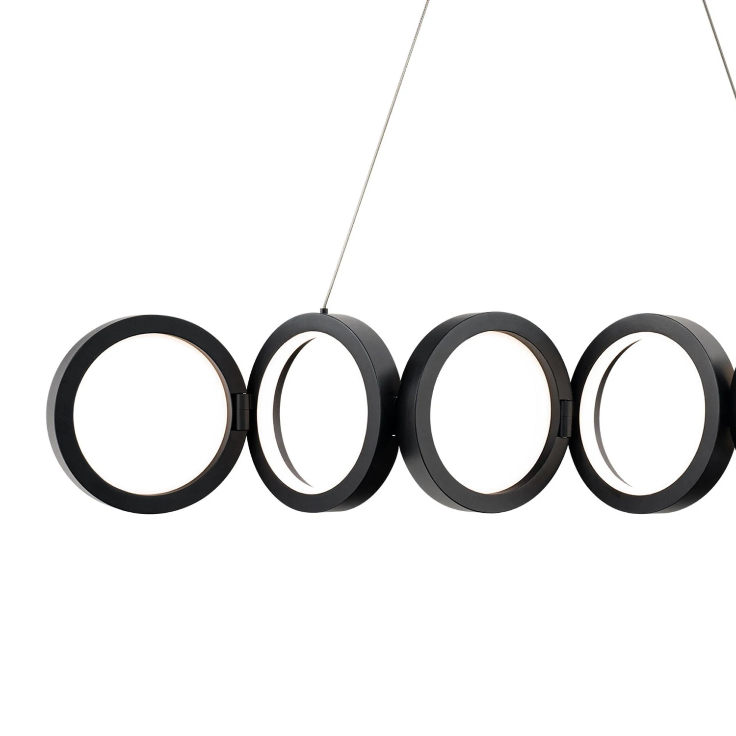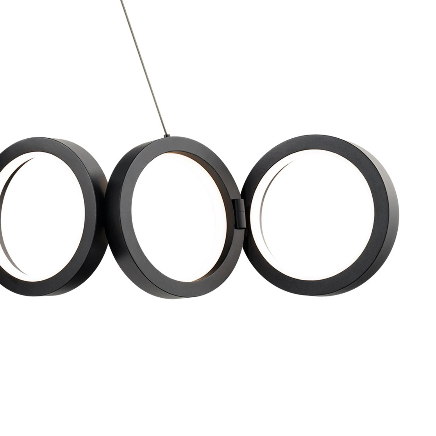 A cheeky design is festive and modern, creating a fun aesthetic in the Cabot LED Pendant Light from dweLED. Black finish extruded aluminum circle frames lined with diffusers align to deliver an optical sensation, with stealth cables adding adjustable height settings and a customized configuration. Choose this energy-efficient fixture to wake up a conventional contemporary space.