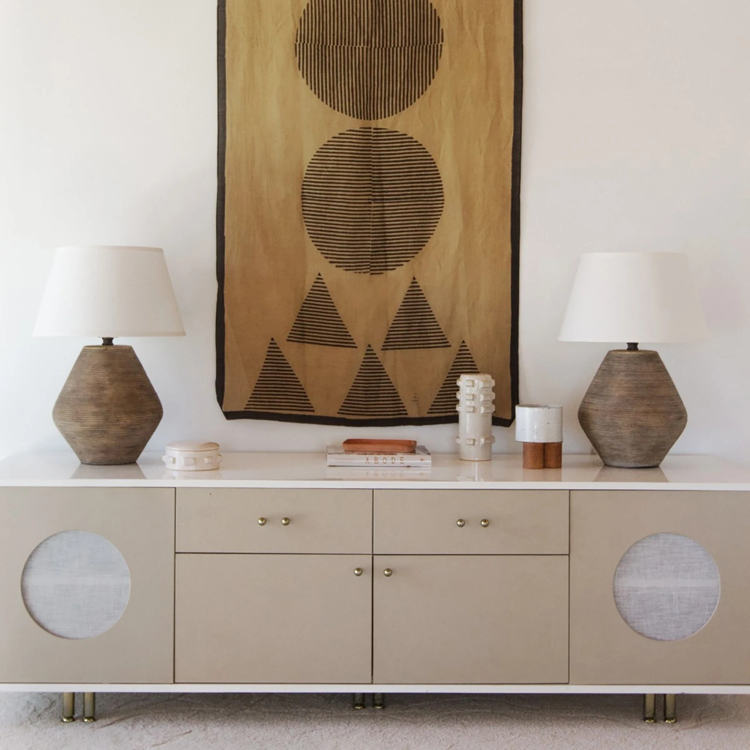 Proportion and symmetry stylize the Calabria PTL1011 Table Lamp from Troy Lighting, offering a textured reggio finish over a shapely body with a neutral off-white hardback linen shade.