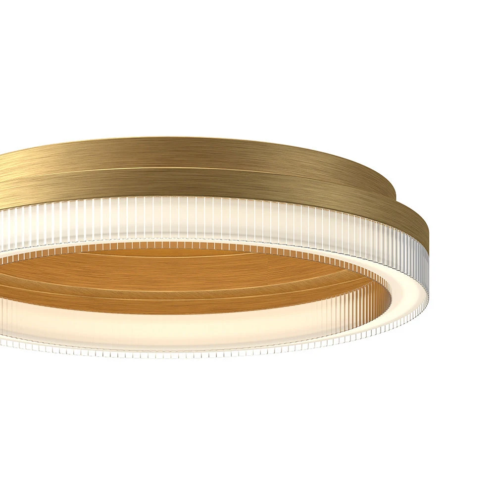 Art Deco influence shines through in a light fixture modeled after decadence and sophistication. The Calix LED Flush Mount Ceiling Light from Kuzco Lighting begins with a minimalist layered aluminum frame and ribbed acrylic ring surrounding a glowing diffuser, all creating both artistry and glowing illumination with energy-efficiency.
