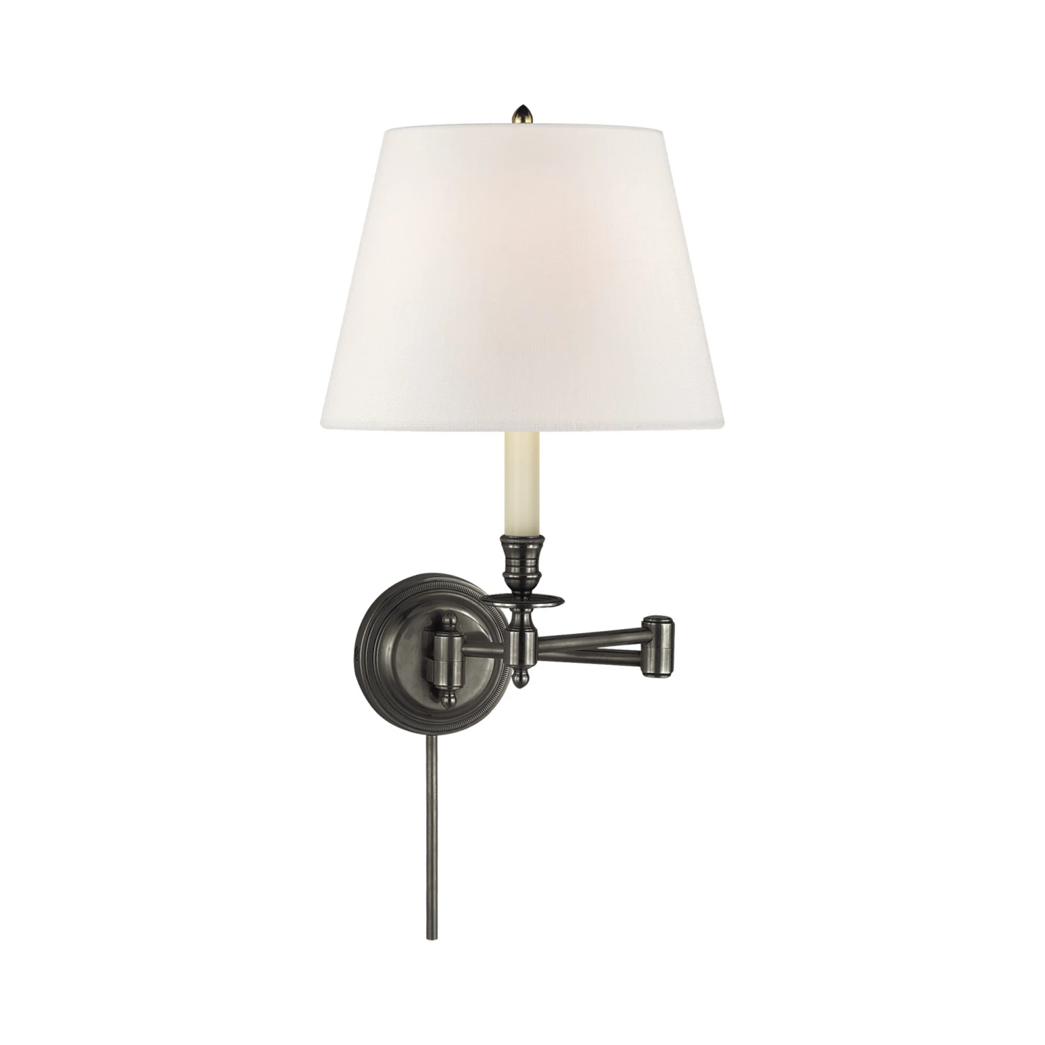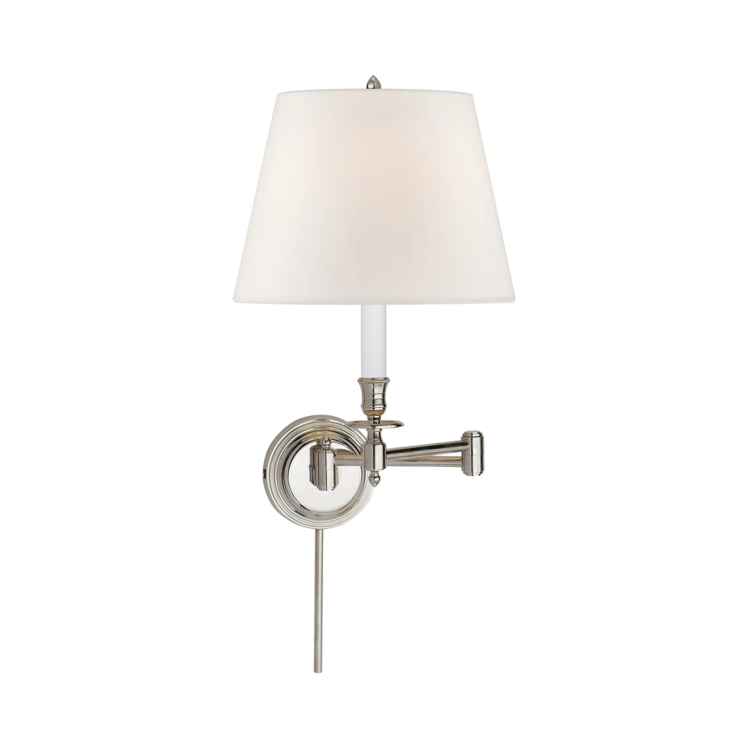 The timeless elegance of the traditional Candlestick Swing Arm Wall Light from Visual Comfort Signature makes itself at home next to inviting bedsides, offering versatility and a chic sophisticated style. An adjustable swing arm rotates and reaches to a desired location over beds and nightstands, casting a lovely diffused glow and a metallic touch.