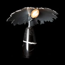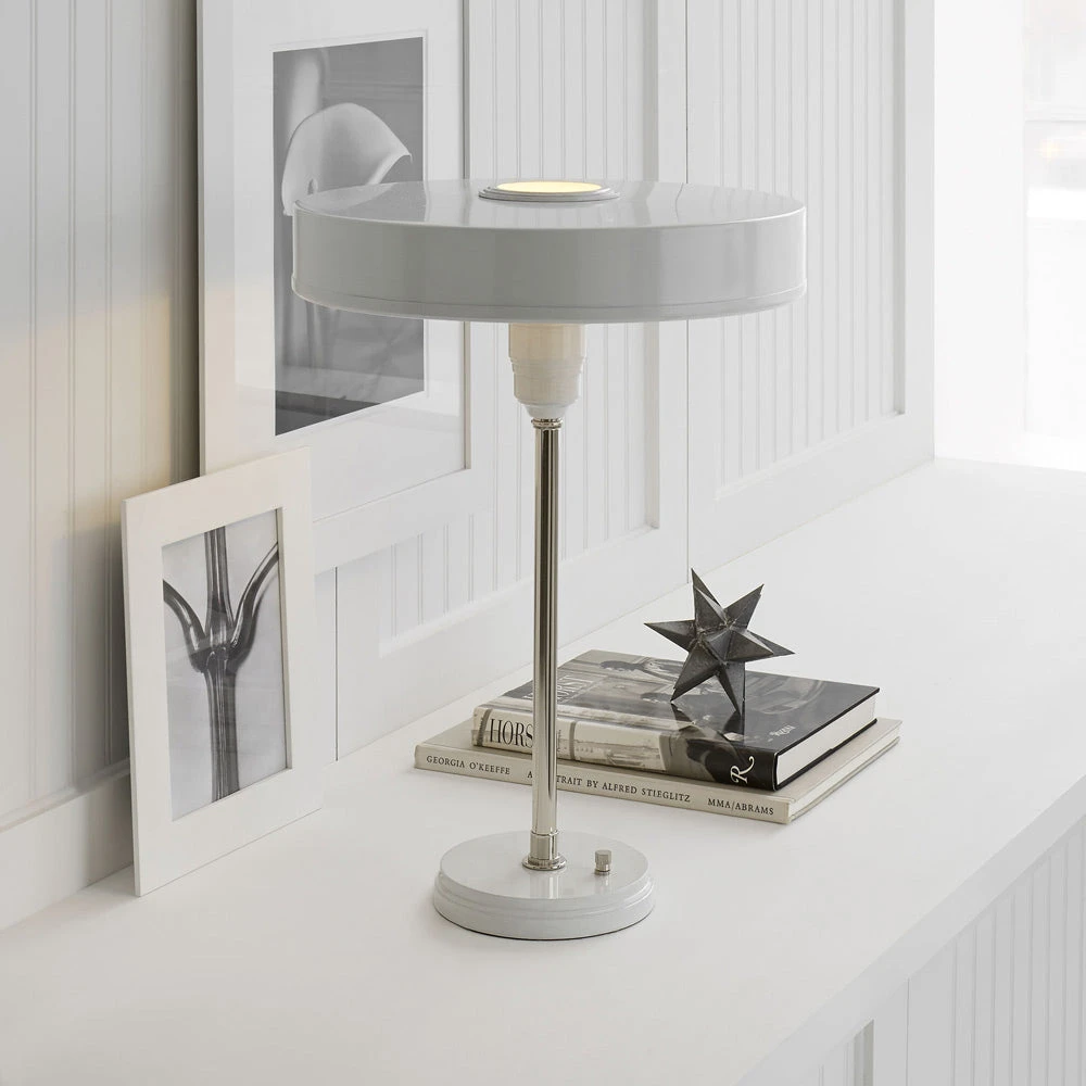 Explore a space-inspired motif in a lamp designed to become part of an upscale décor scheme. The Carlo Table Lamp from Visual Comfort Signature delivers chic style elements including a whimsical disc-shaped shade.
