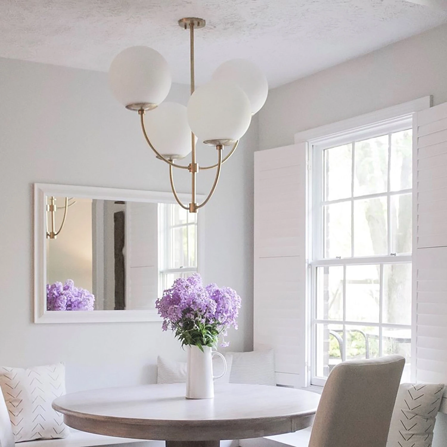 For a modern aesthetic that’s decidedly different, Carrie Chandelier from Mitzi is a step above the rest. Graceful curves fuse with dramatic globe diffusers for a glowing display of elegant illumination ideal for dining decor.