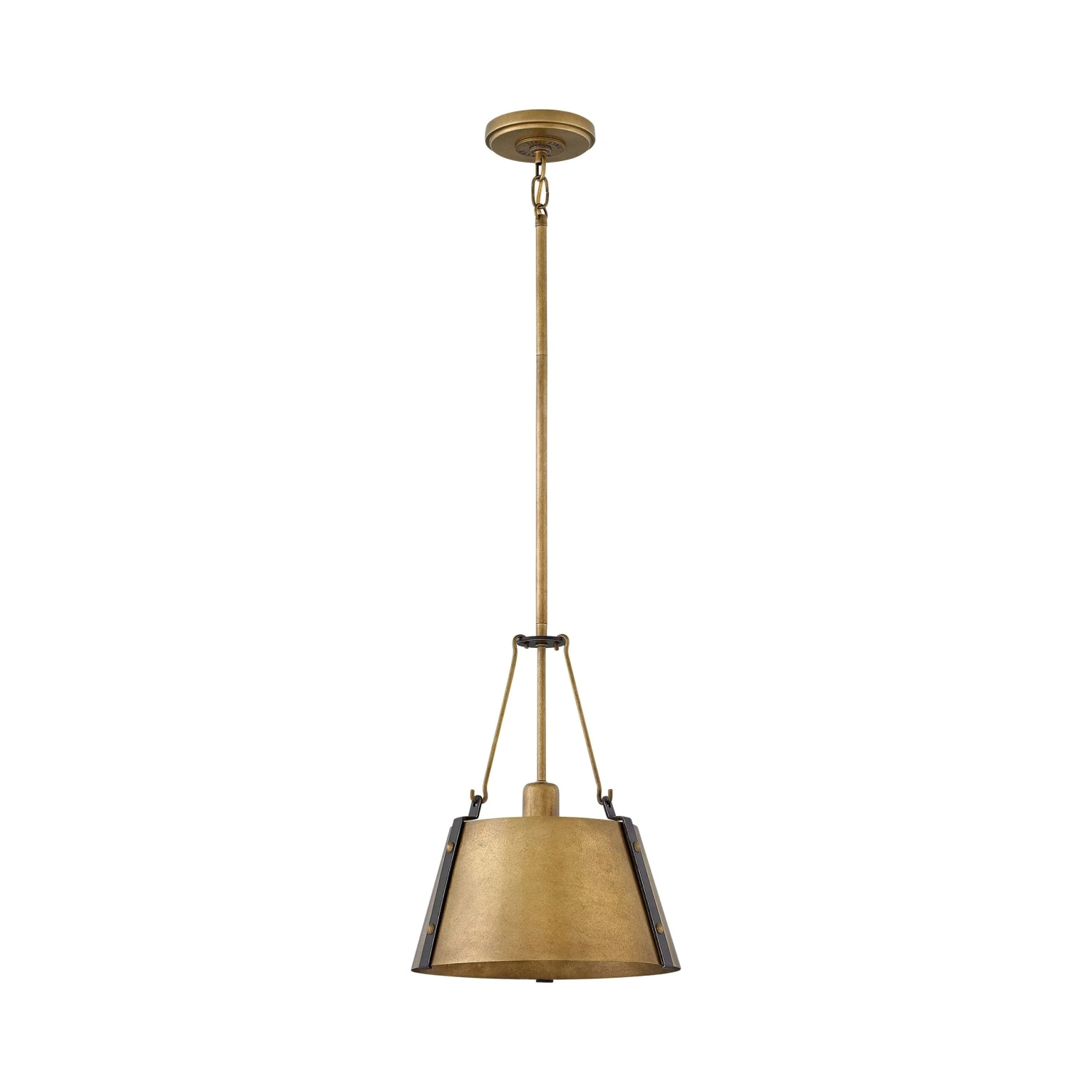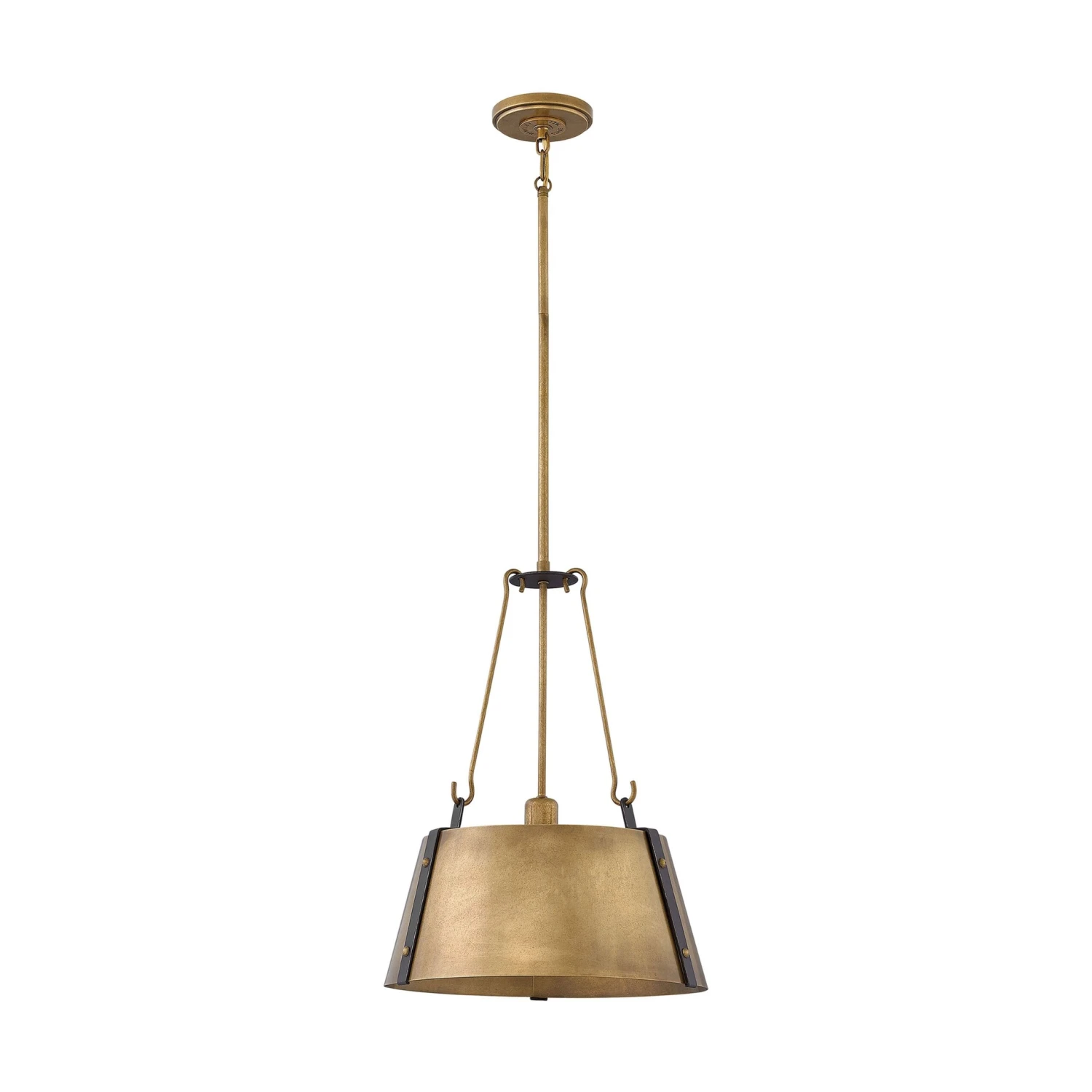 Cartwright Drum Pendant Light captures a modern farmhouse aesthetic with its minimalist silhouette enriched by exquisite details and rich finishes. Contrasting straps are enhanced by bold rivets while robust hooks add a masculine elegance.