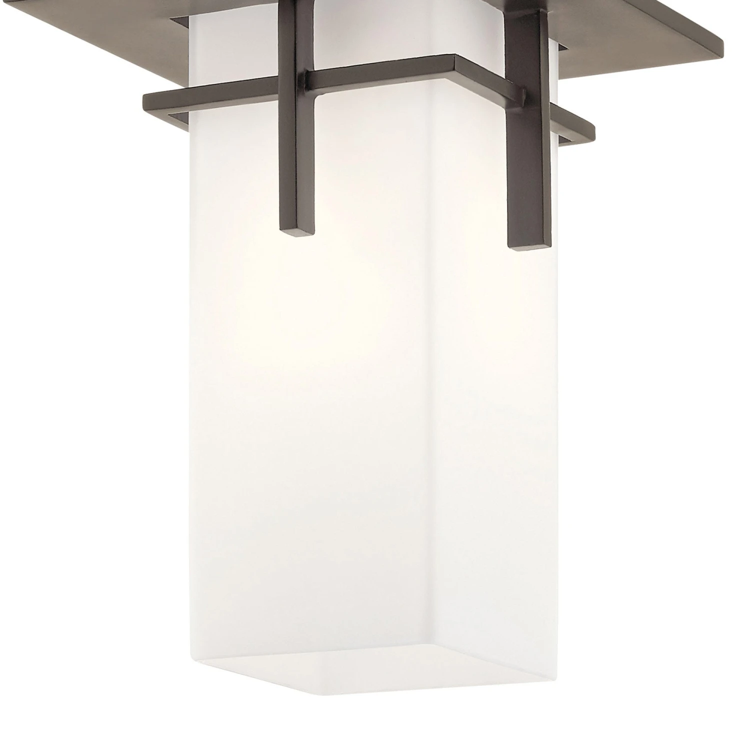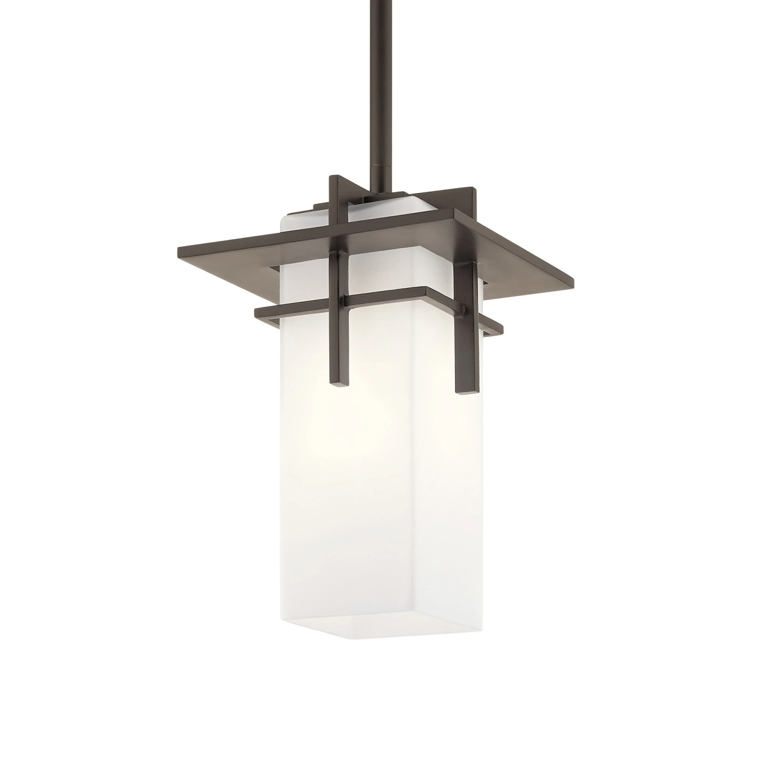 Stain etched glass brings a warm and inviting aura to the Caterham Outdoor Pendant Light from Kichler. Gorgeous over your front entry, the pendant boasts a structured silhouette complete with squared edges and decorative framing in a contrasting old bronze finish.
