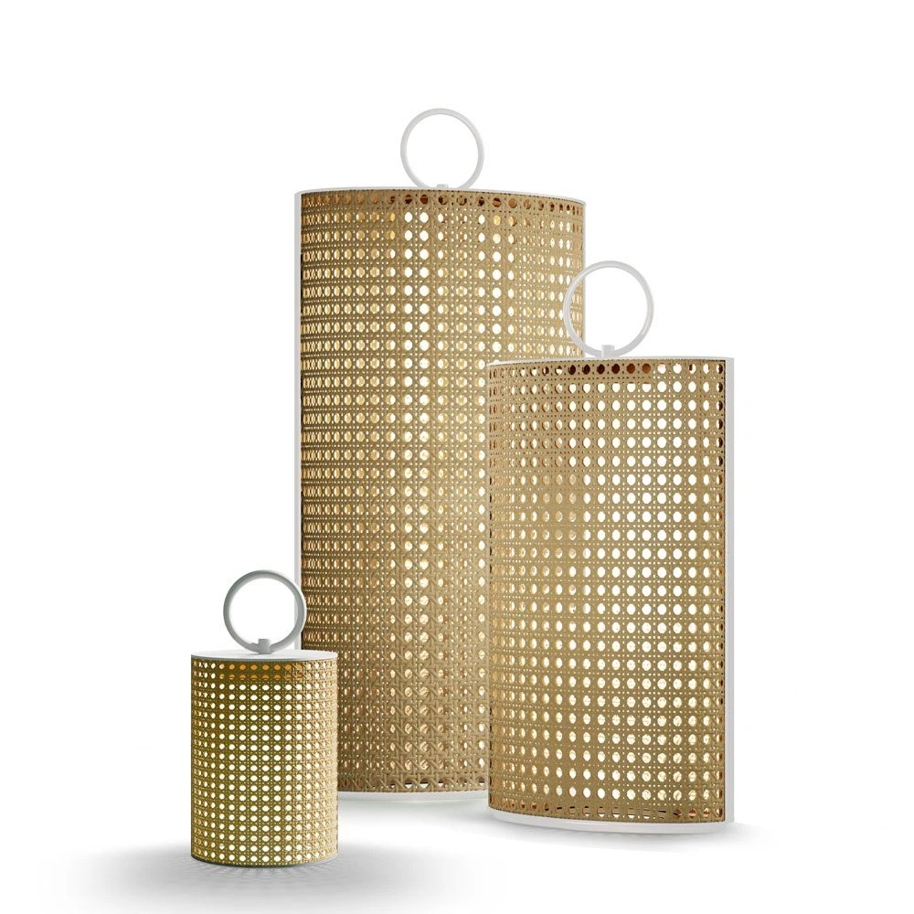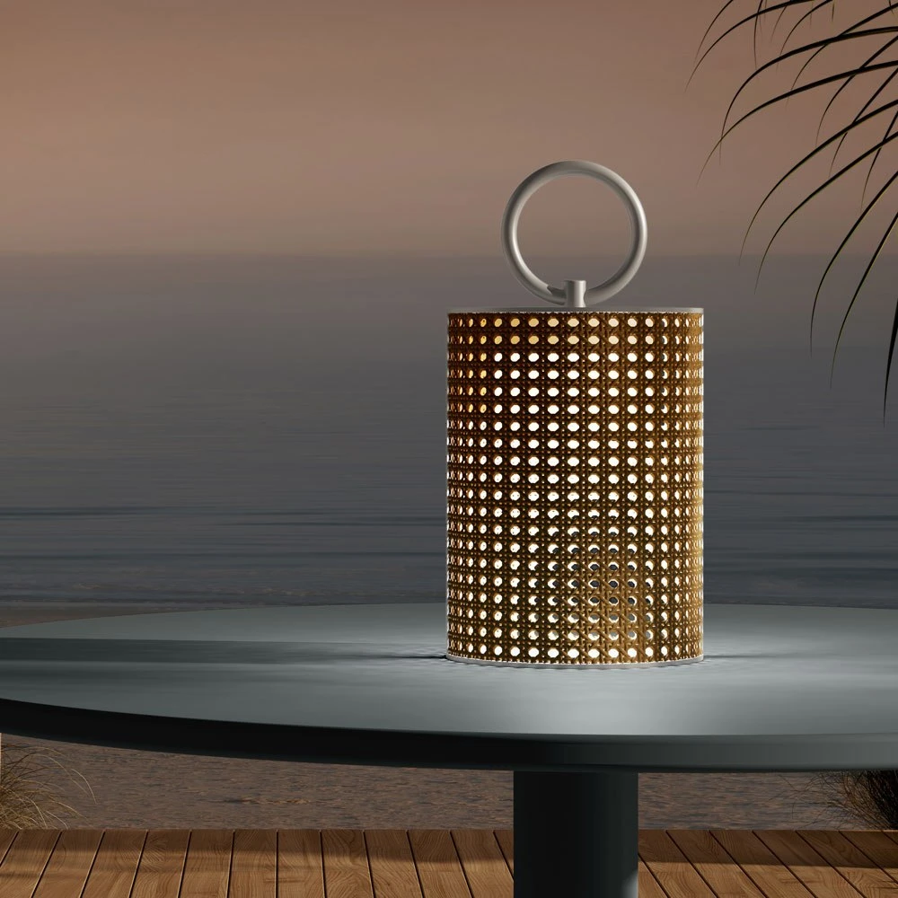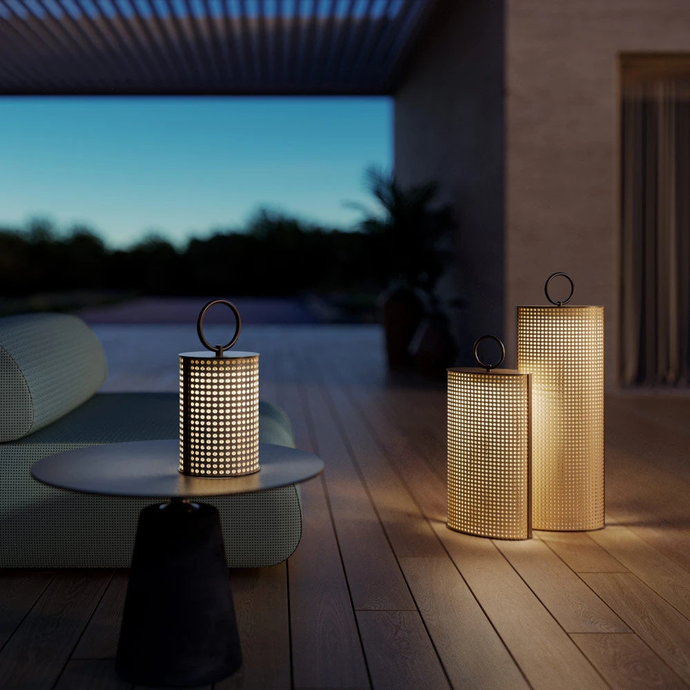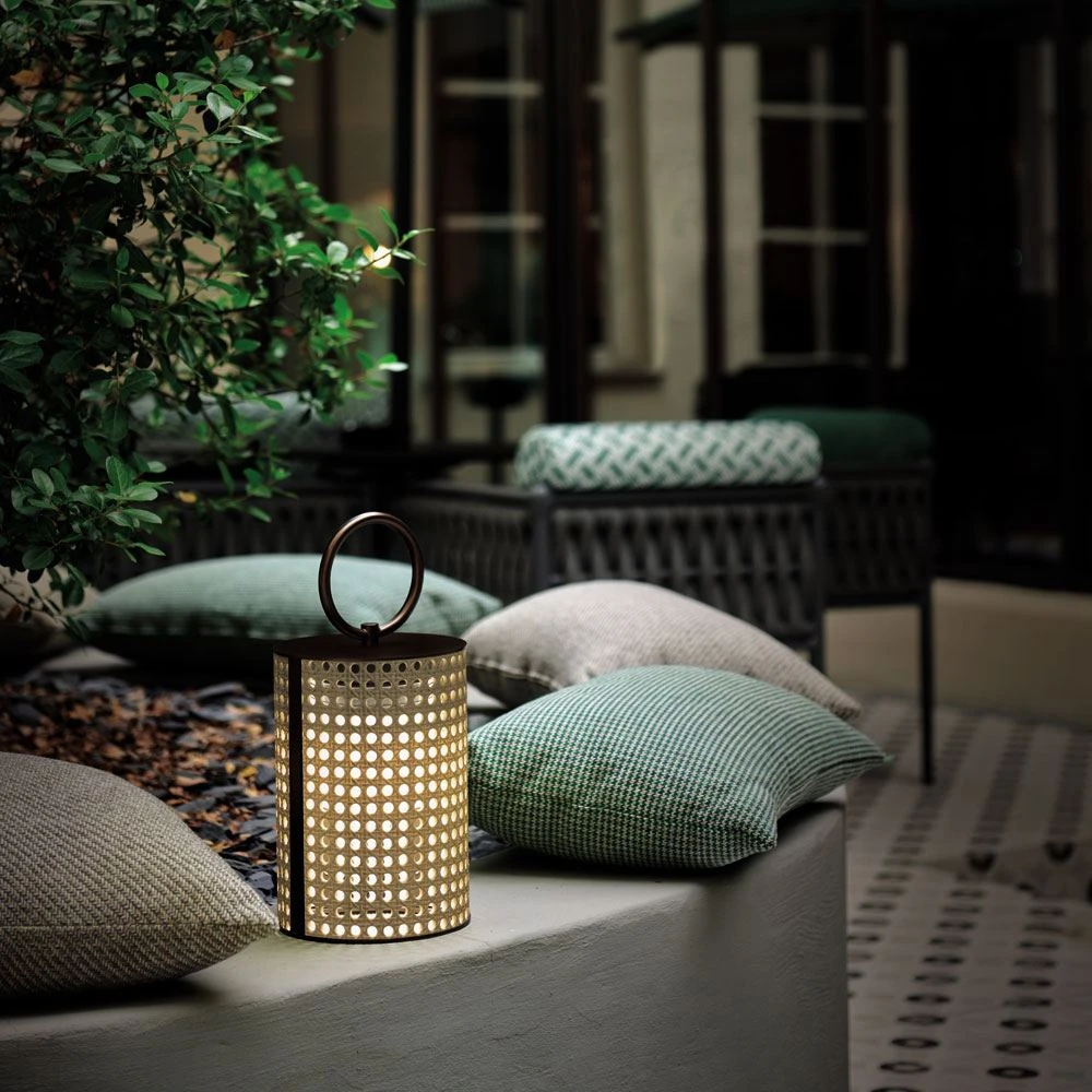 A decorative ring and perforated diffuser are built to impress on the Clara Outdoor LED Table Lamp from Contardi. It’s a portable, rechargeable lantern designed to impress with its perfect blend of modern and vintage aesthetics. A ring detail allows you to remove, and even suspend, the light source to create the perfect effect for every occasion.
