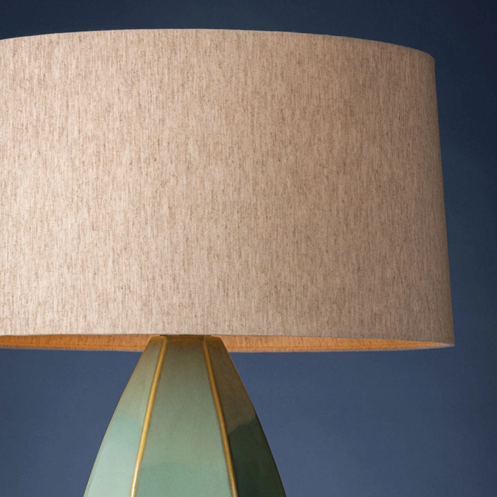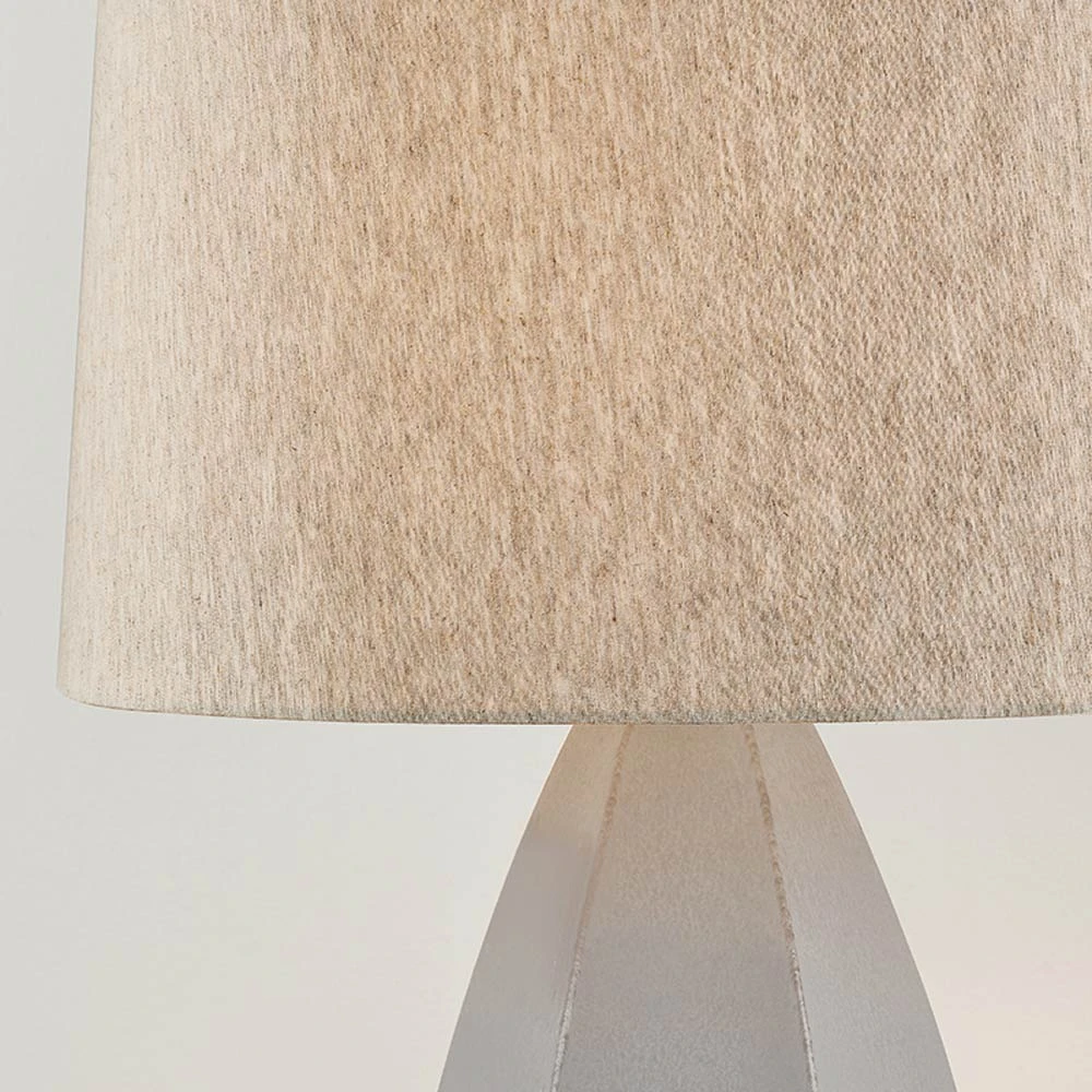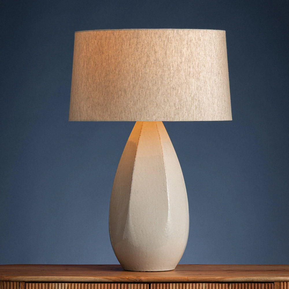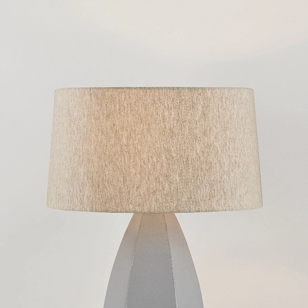 Delicate curves and soft ceramic finishes combine in the Colwyn Table Lamp from Hudson Valley Lighting, offering a peaceful and inviting presence. The Dove White Wash glaze on the base lends a glossy texture that captures light and creates a dynamic, serene atmosphere. Topped with a natural linen drum shade and accented by metal hardware, this lamp exudes quiet sophistication.