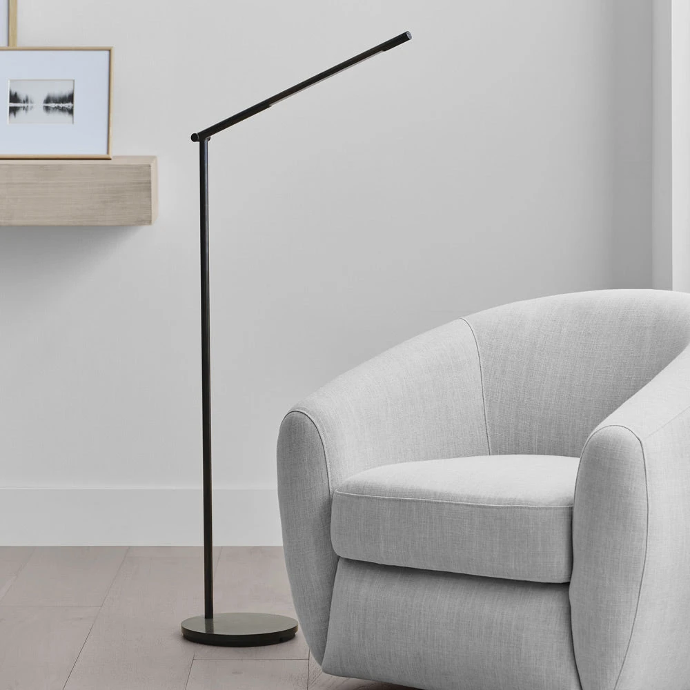 Cool and unassuming, the Cona LED Floor Lamp from Visual Comfort Signature delivers a wash of light to create the perfect ambiance. A slender tube shade angles off a slim post, all balanced with a round base for minimalist stability.