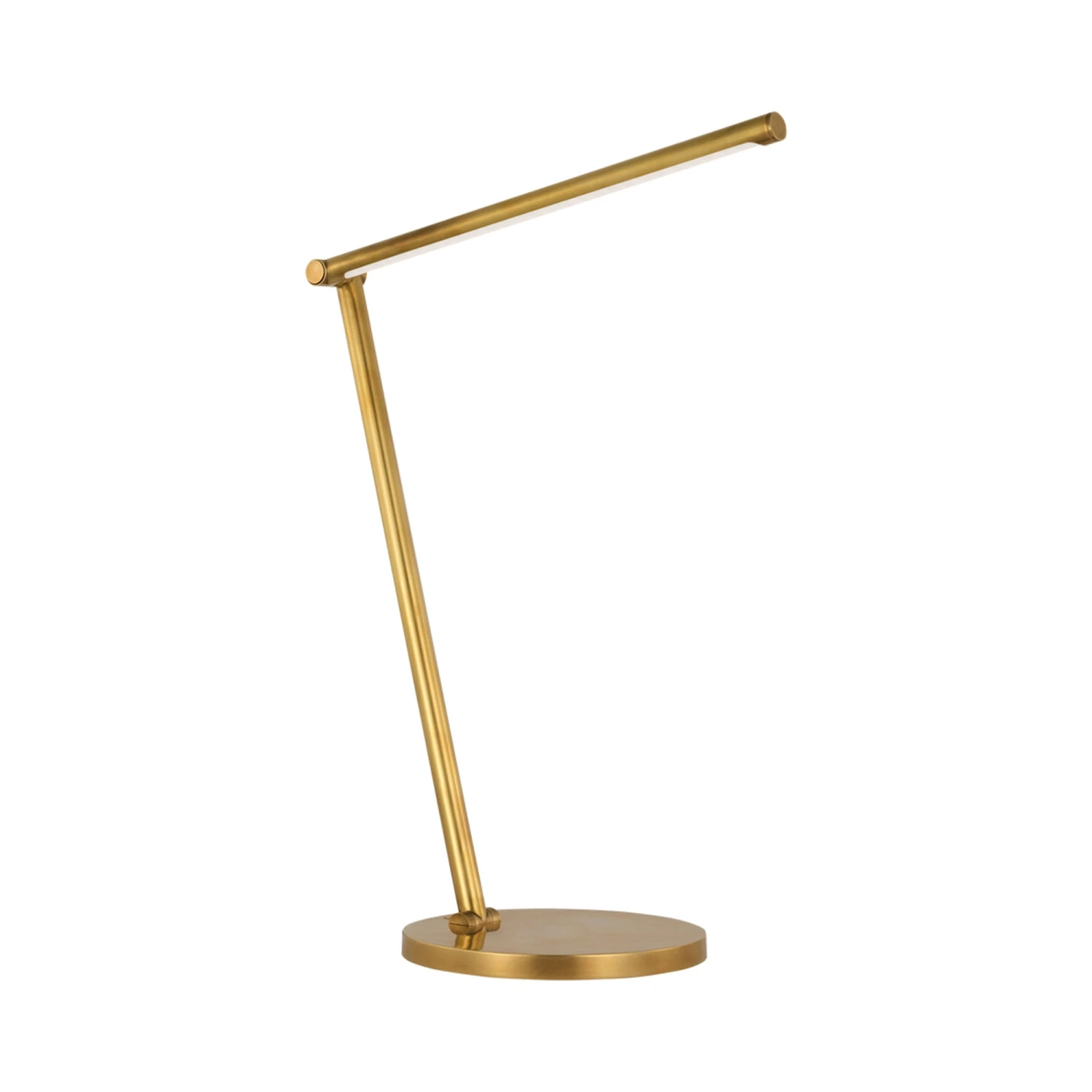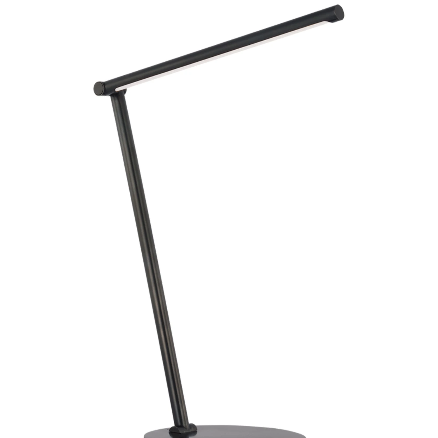 The Cona LED Table Lamp from Visual Comfort Signature multiplies a less-is-more design statement, truly capturing an optical vibe that’s sassy and fun. Metal construction begins a semi-quirky look in a lamp with angular silhouetting, A tipped arm and shade piece disrupts conventional spacing principals, sending soft illumination through a long diffuser as dedicated LED with a base-mounted touch dimmer adds significant convenience to a stylish light source.