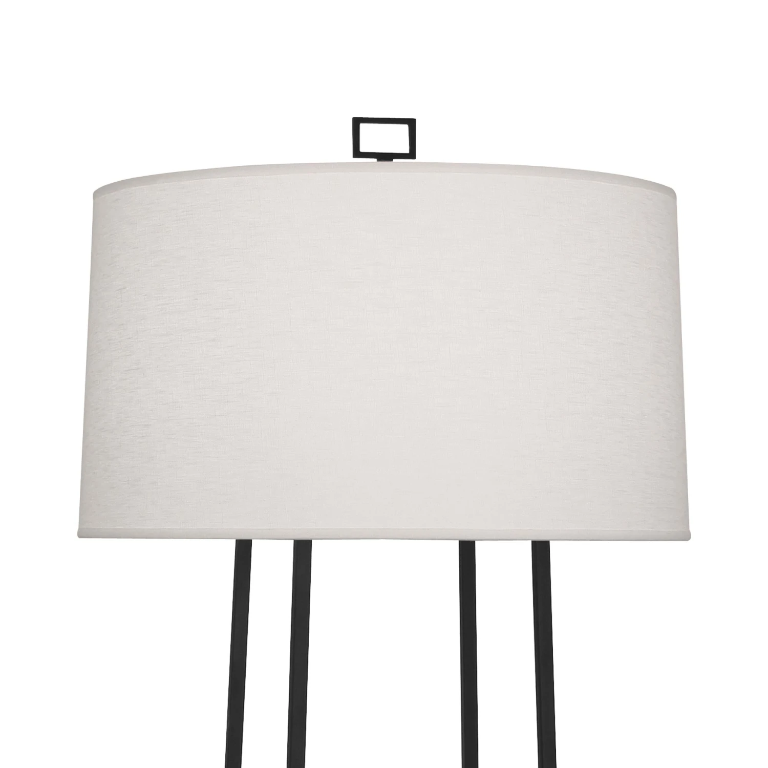 Linear design elements bring simplicity with an elegant look to the Cooper Floor Lamp from Robert Abbey, adding a versatile wrought iron finish to coordinate with custom décor schemes.