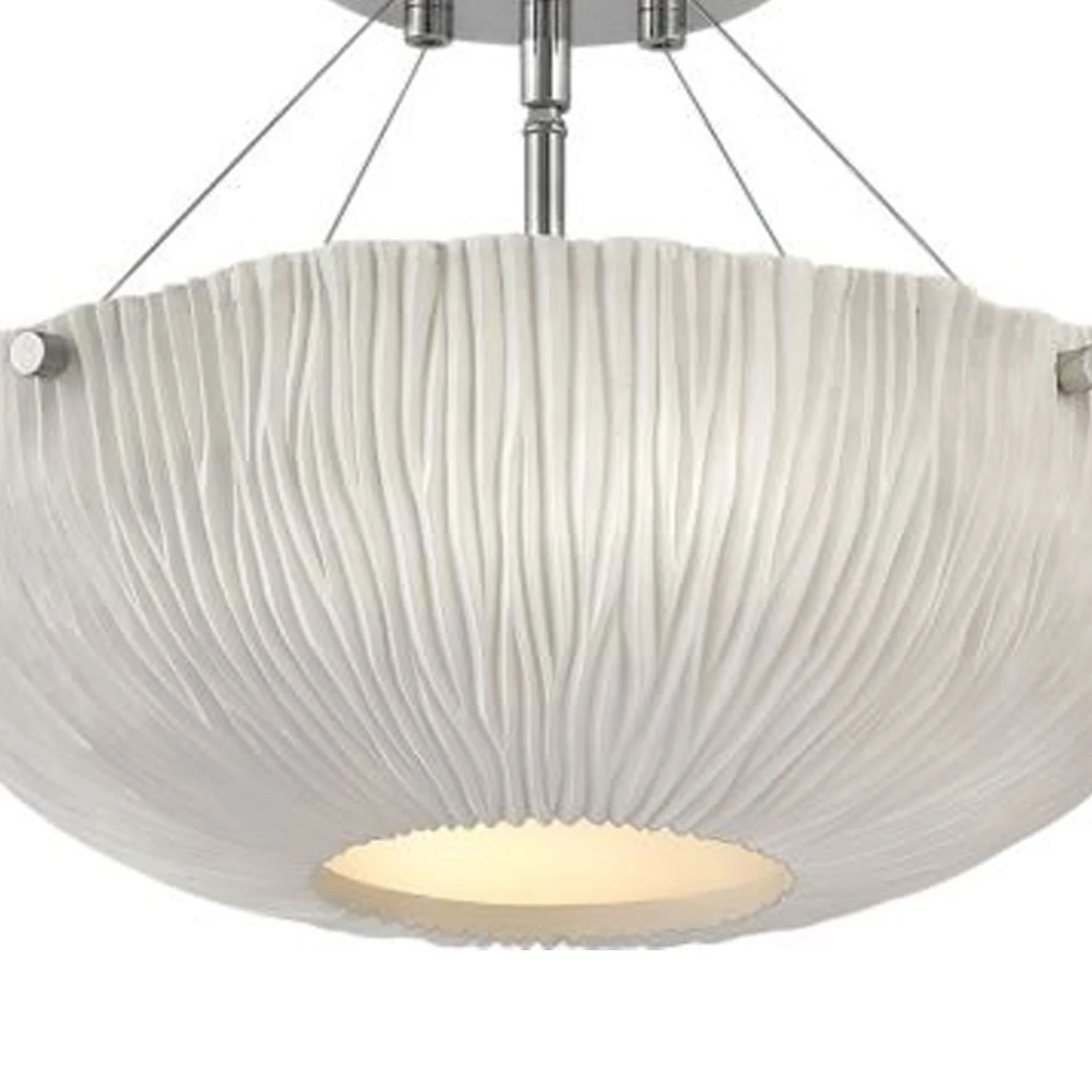 On the surface, Coral Semi Flush Mount Ceiling Light has a bold, single bowl design, striking and in innovative in its simplicity. Diving a little deeper reveals the intricate details, including hand-carved patterns cast into its matte white surface and an open bottom to focus the light downward. A Polished Nickel stem and canopy complete the look. Coral is part of the Lisa McDenNon Collection.