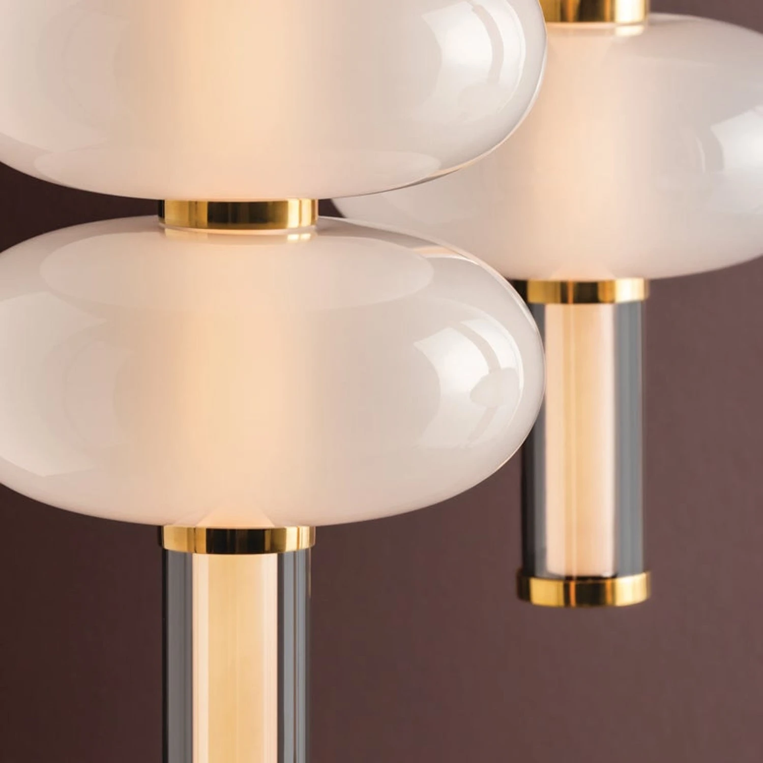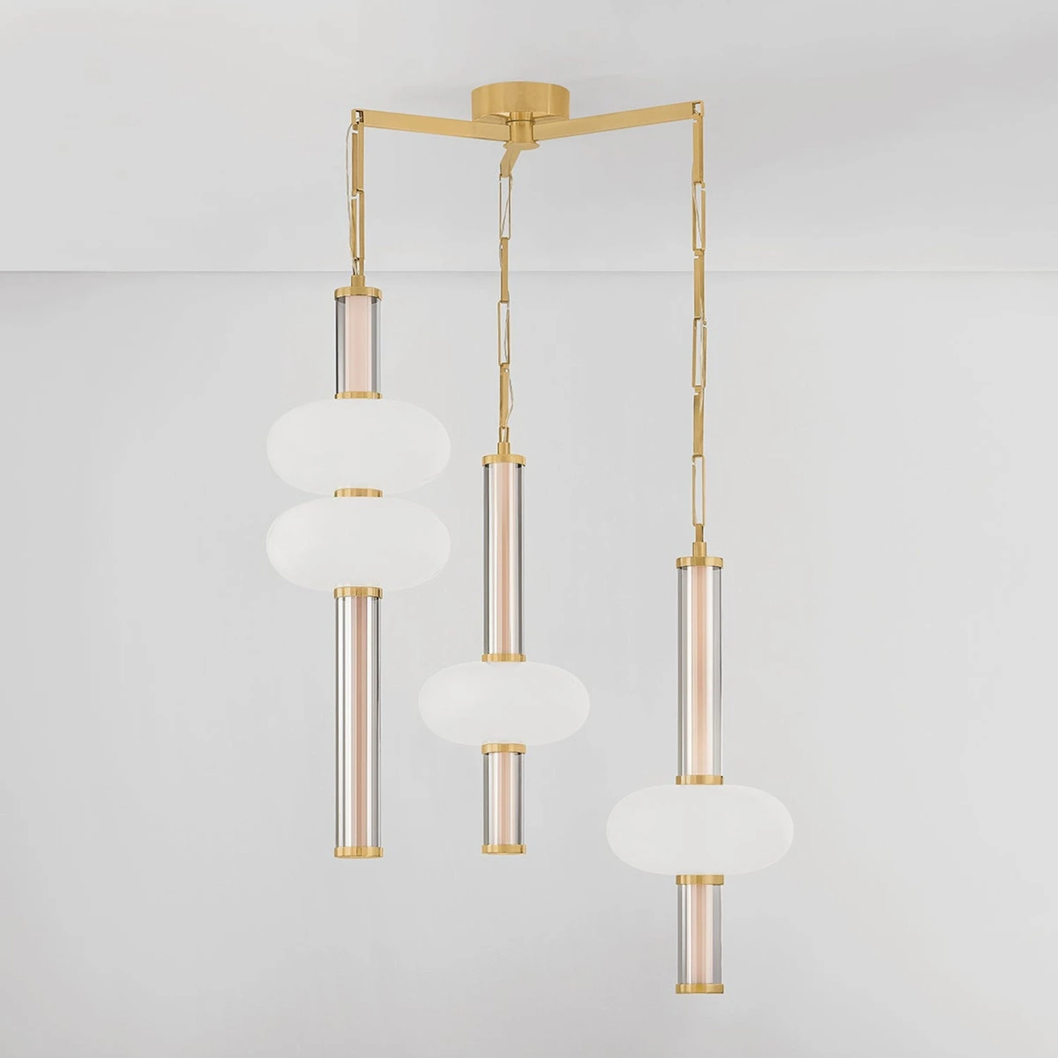 Weights and balances create an accessible look of whimsy in a light fixture put together with chic materials. The Corbin LED Multi-Light Pendant Light from Corbett Lighting blends glass and brass in decadent style as it creates a windchime-inspired design with central tubes of ombre glass intersected by pillowy clear glass bead-inspired forms.
