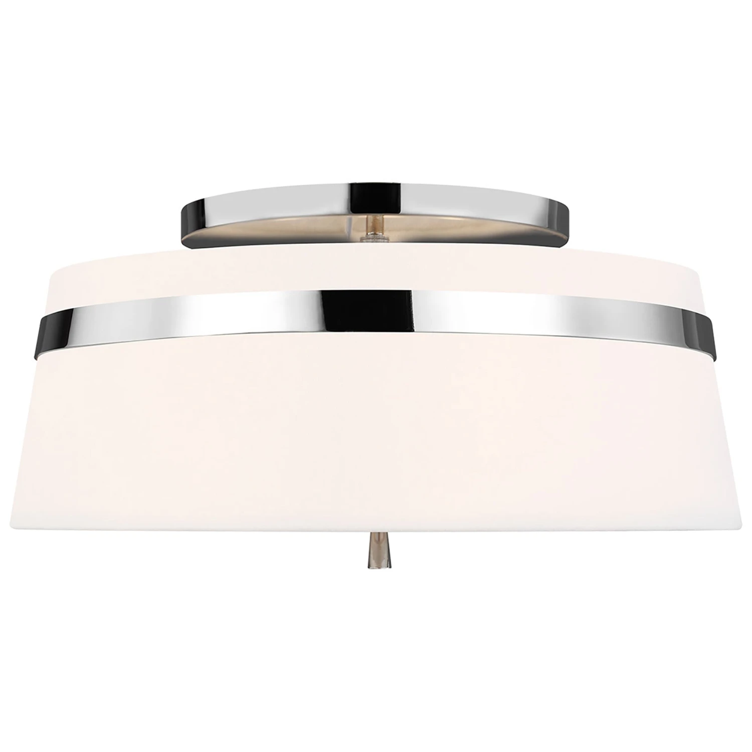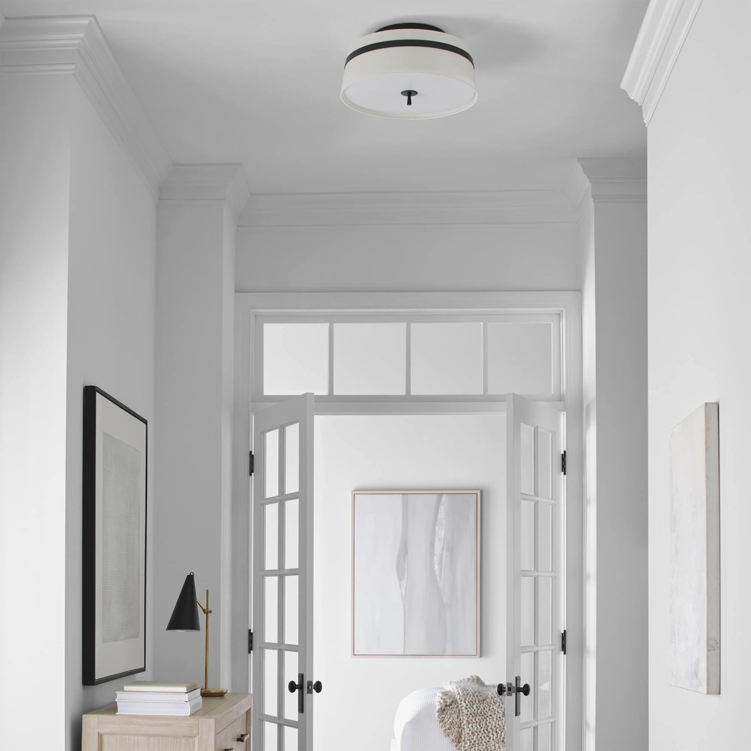 Delicate bands enhance the sleek simplicity of the Cordtlandt Semi-Flush Mount Ceiling Light from Visual Comfort Studio. Its refined design delivers alluring illumination with a white linen drum shade with slight taper, paired with a metallic finish that adds the perfect dose of contrast over a bedroom, den, or seating group.