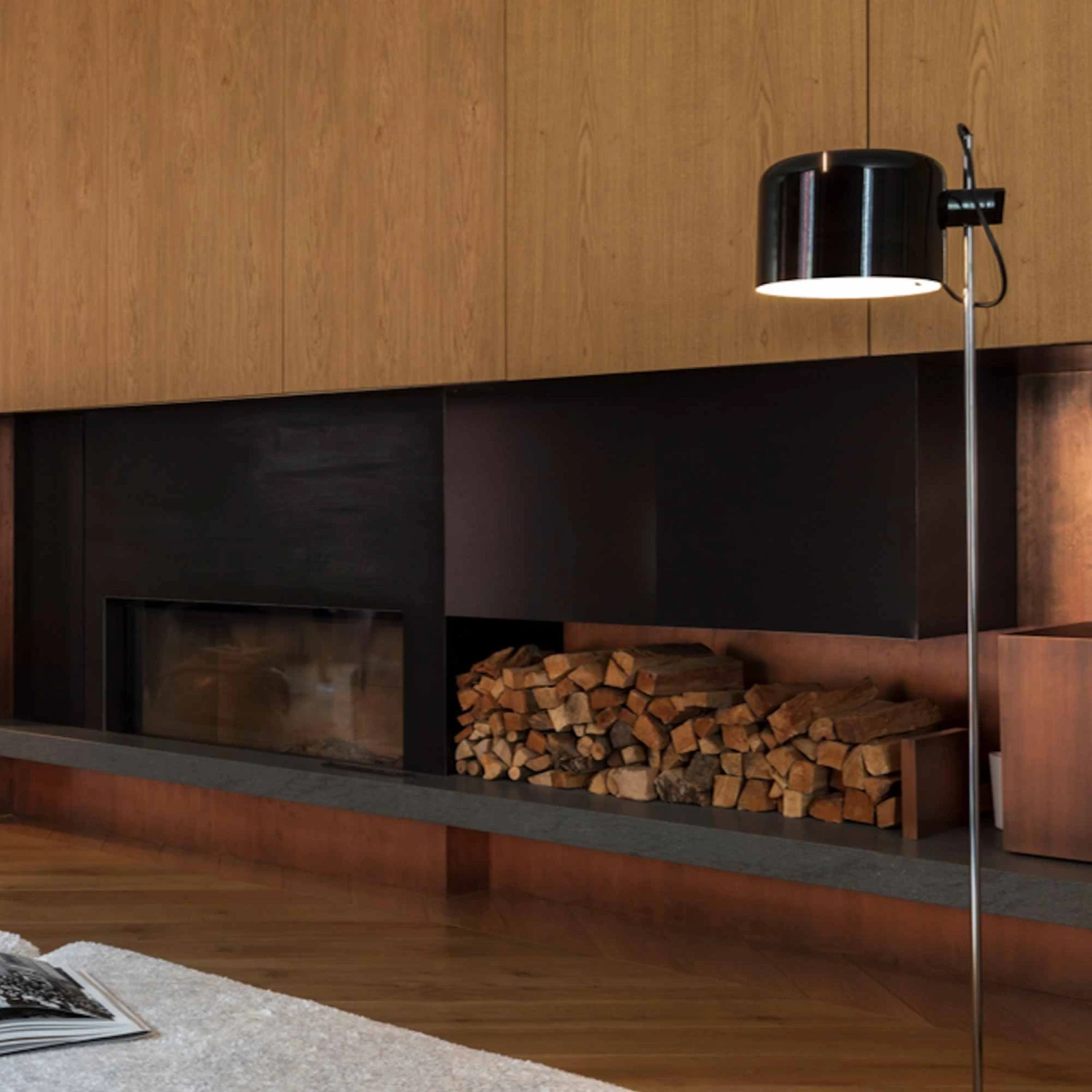 The Coupé Floor lamp is made of metal lacquered base and structure, chromium-plated stem and adjustable re_x001F_ector in lacquered aluminum. The simple, ingenious mechanism that connects the stem to the head makes it possible to direct the beam in several directions, by moving the dome up, down and sideways. In 1968, Coupé won the ”International Design Award” of the American Institute of Interior Designers in Chicago. It is part of the permanent collection at both the MoMA in New York and the ”Neue Sammlung” Museum in Munich.