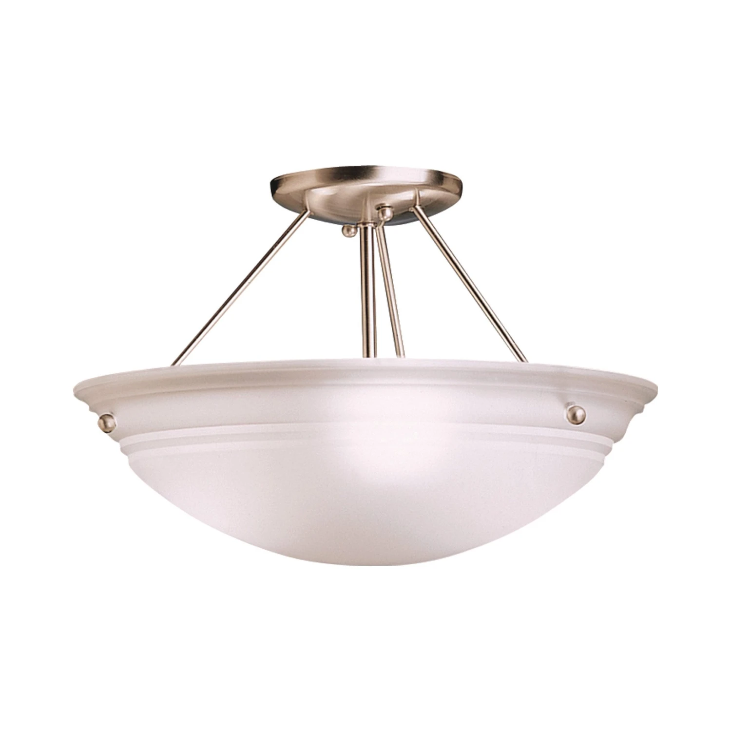 Utilizing basic shapes for a simplistic design, the Cove Molding Top Glass collection conveys a smooth, classic style to complement any décor. The Cove Molding Semi Flush Mount Ceiling Light features a Brushed Nickel finish for a clean, timeless appeal while the Satin Etched White Glass completes this total look by generating a warm, soft glow.