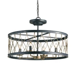 Bring a bold look of industrial and farmhouse charm to any space with the Crisscross Semi Flush Mount Ceiling Light from Currey and Company. This tasteful fixture captures a cage-like motif with crossed strips of slender metal circling a drum frame made of French black wrought iron. Petite lights illuminate a dining room or foyer with energy-efficient light, embellishing the romantic feel of a classic.