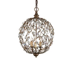With the graceful artisanal theme of nature at its core, the Crystal Bud Orb Chandelier from Currey and Company indulges a love of florals as it illuminates a dining room, living space, or foyer. Marvel at the cage-like round silhouette of this wrought iron pendant embellished with petite clear crystal bud icons swirling in a fanciful pattern. The delicate character of this fixture is an irresistible option for botanicals.